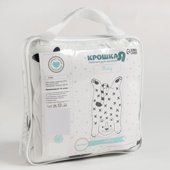 Одеяло-плед Крошка Я «Тигр» 90×150 см, велюр, синтепон 100г/м2