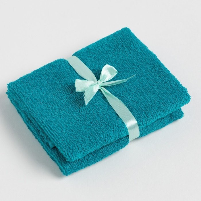 Набор махровых декоративных салфеток бирюзовый, 2шт., 340 г/м2, 30×30 см