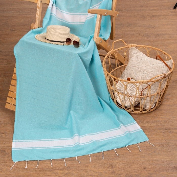 Полотенце для ванны Пештемаль Love Life «Cotton Foutah"90х170см,220г/м,80%хл,20% п/э,голубой 73 643