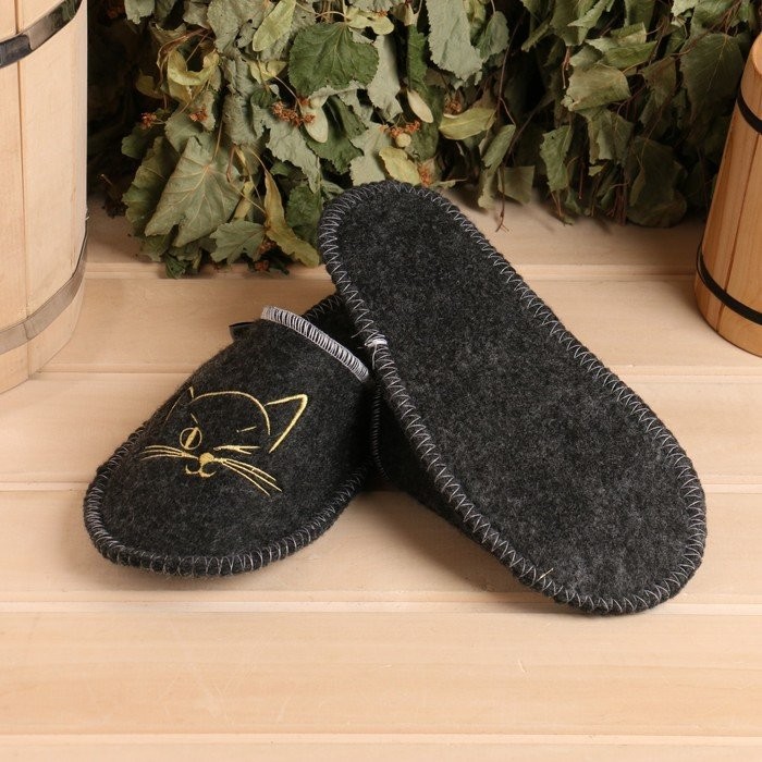 Тапочки для бани серые с вышивкой «Кошечка» женские (26 см внутр. стелька)