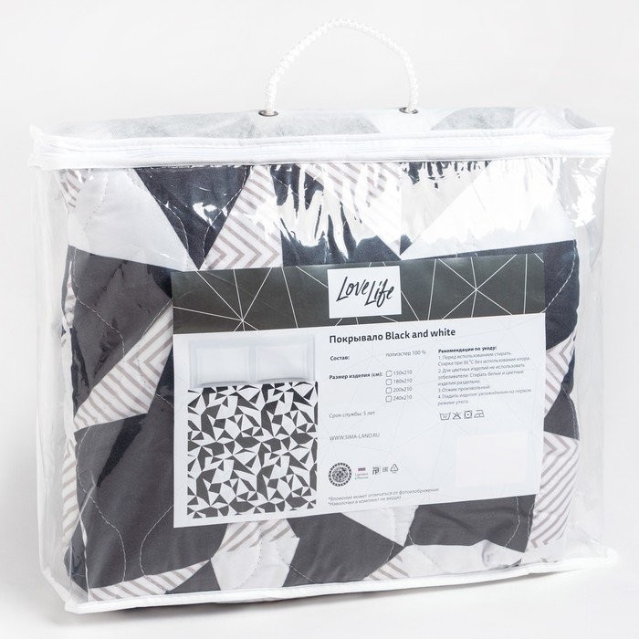 Покрывало LoveLife 1.5 сп Black and white 150*210±5 см, новосатин,80 г/м2