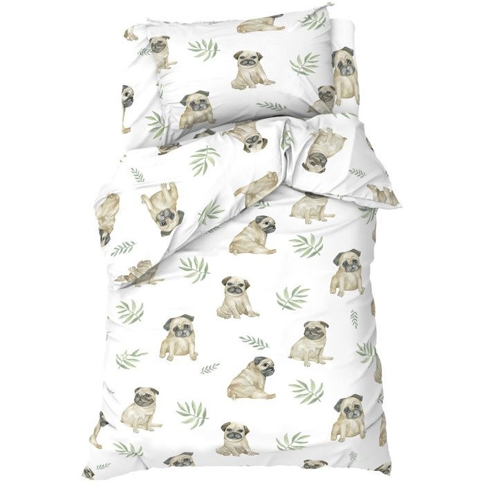 Постельное бельё Этель 1,5 сп «Мопсы» 143×215 см, 150×214 см, 50×70 см -1 шт, 100% хлопок, бязь