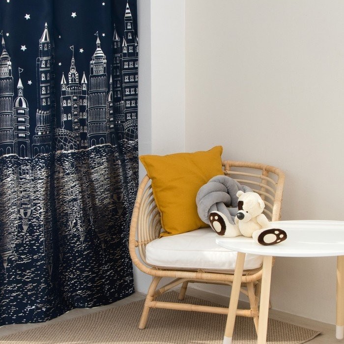 Портьера Этель «Ночной город» без держателя, цвет синий, 110×260 см, блэкаут, 100% полиэстер
