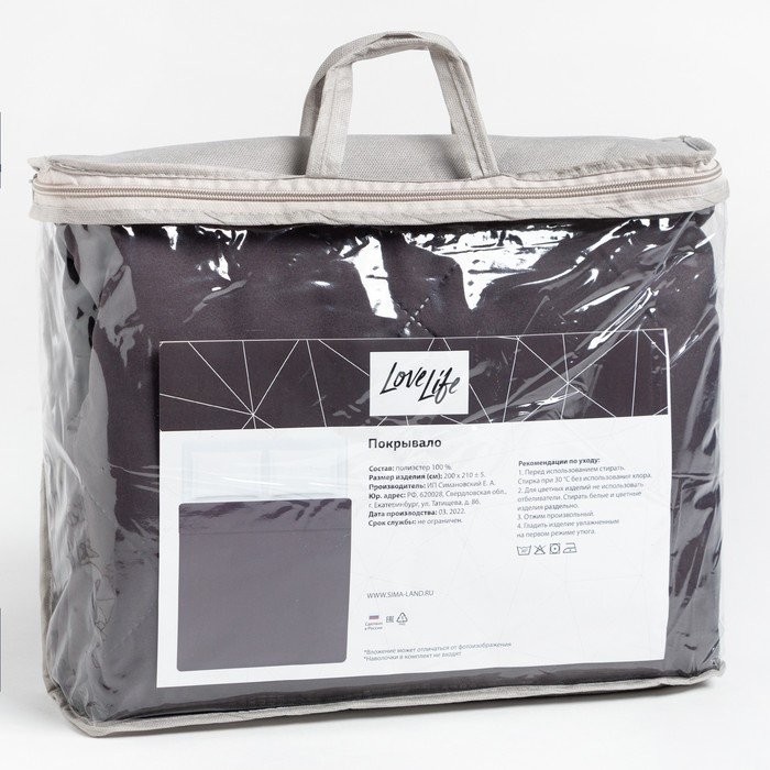 Покрывало LoveLife Евро Макси 240×210±5 см, цвет темно-серый, микрофайбер, 100% п/э