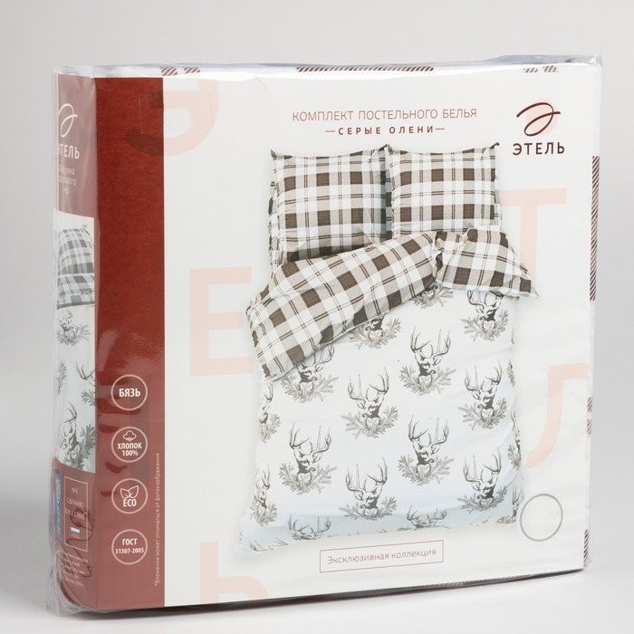 Постельное бельё Этель евро «Серые олени» 200×217 см, 220×240 см, 70×70 см — 2 шт