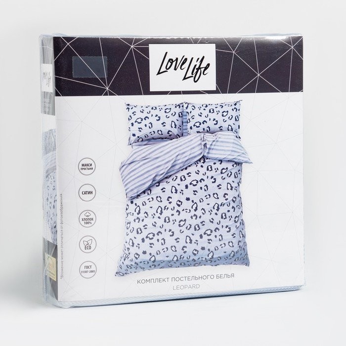 Постельное бельё LoveLife евро Leopard 200×217 см, 225×240 см, 50х70см-2шт, 100%хлопок, сатин, 125г/м²