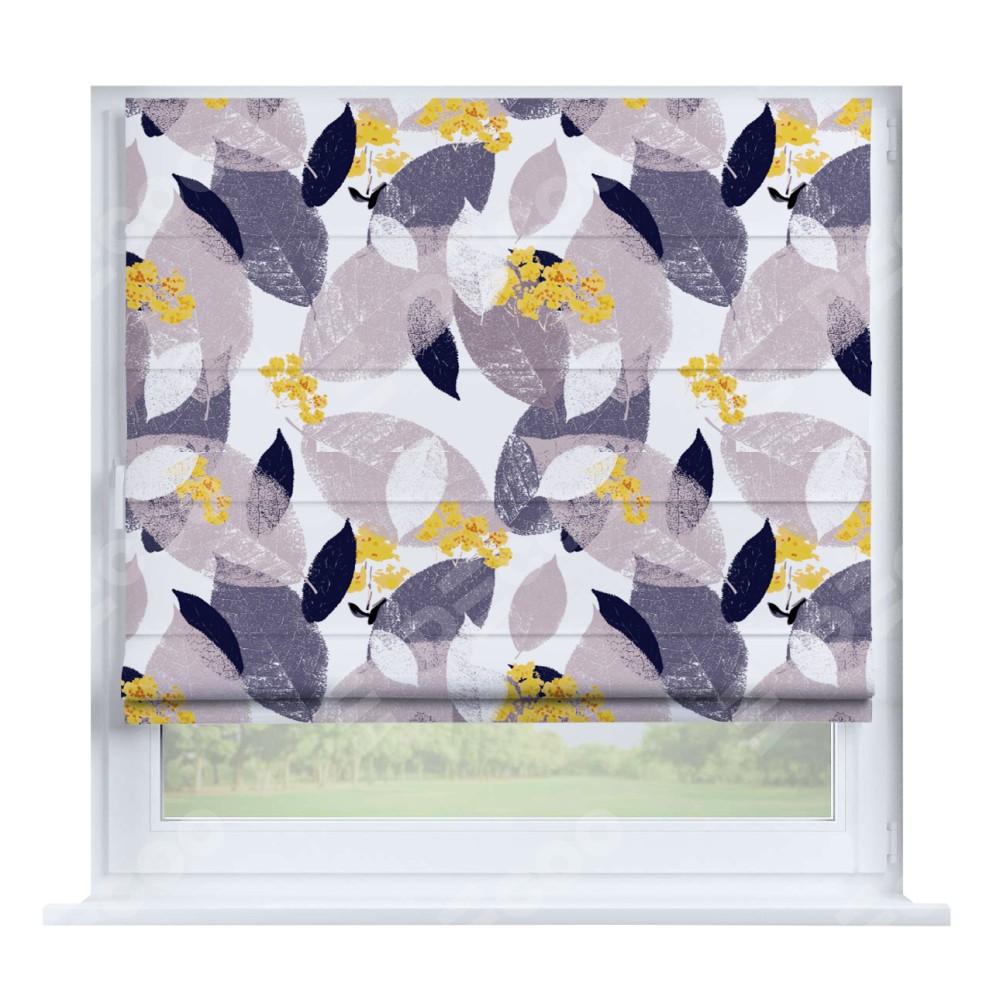 Римская штора производителя «Cortin», устанавливается на створку окна, пошита из ткани блэкаут с нанесением сублимационной печати «Листопад». Штора шьётся по индивидуальным размерам, для данного типа римской шторы возможная ширина от 35 до 150 см., высота до 250 см.