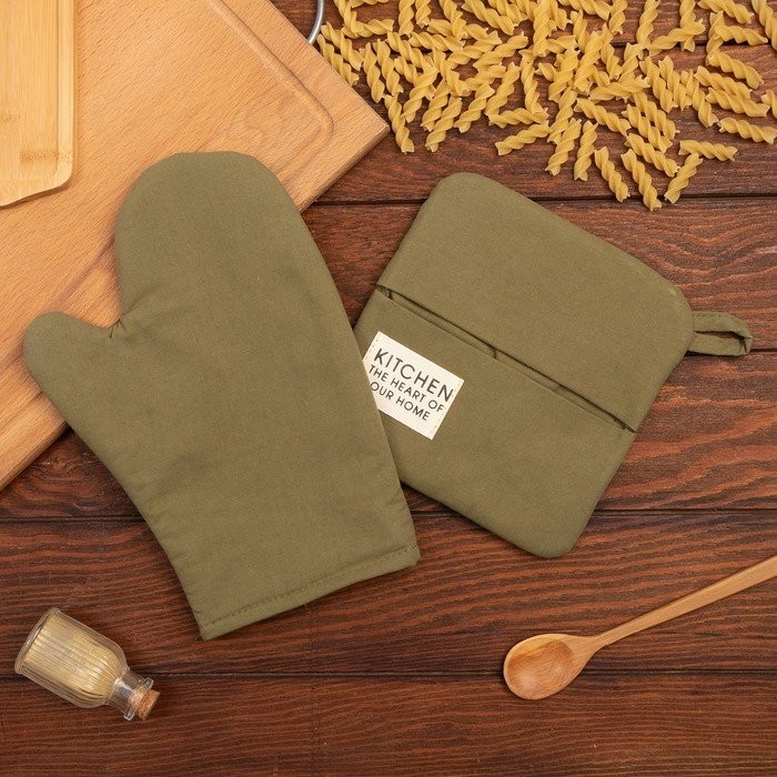 Набор кух. Этель Kitchen, цв. зелёный, варежка-прихватка 18×29 см, прихватка 19×19 см
