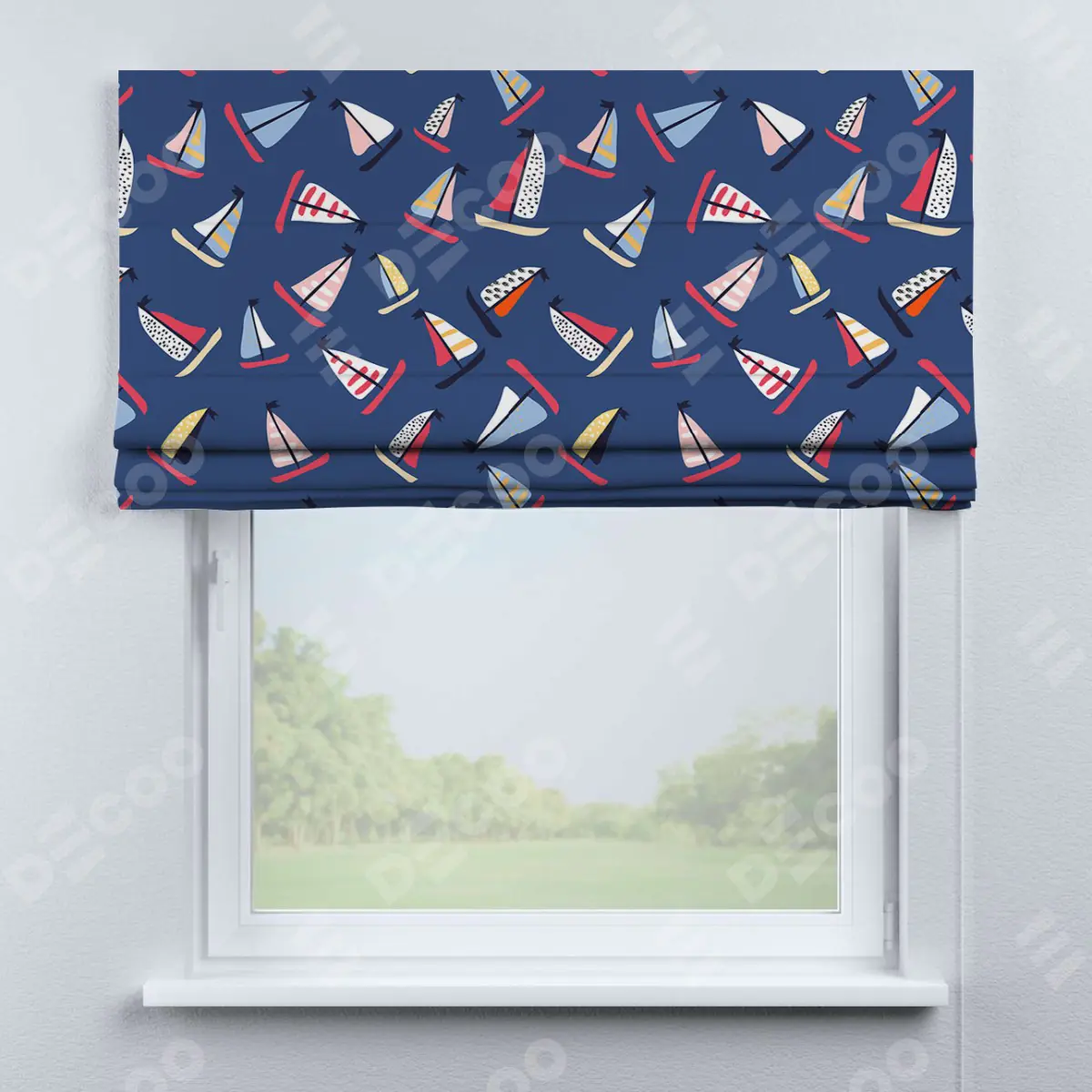 Римская штора производителя «Cortin», используется для проёма, пошита из ткани блэкаут с нанесением сублимационной печати «Морское приключение». Имеет универсальный механизм и подходит для монтажа: на потолок, на стену и в нишу.