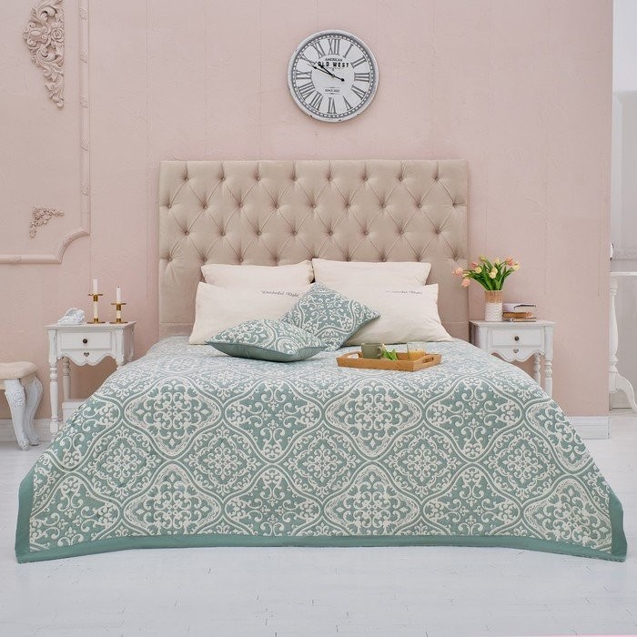 Покрывало хлопковое Этель «Орнамент» 150×240 см, цвет зелёный, 100% хлопок, 300гр/м2