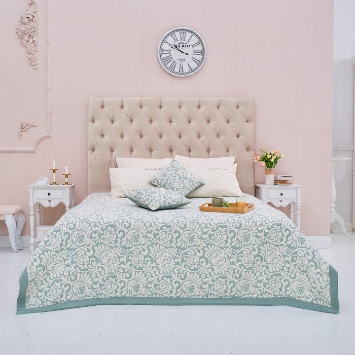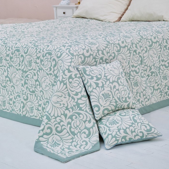 Покрывало хлопковое Этель «Узоры» 220×240 см, цвет зелёный, 100% хлопок, 300гр/м2