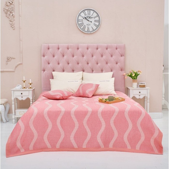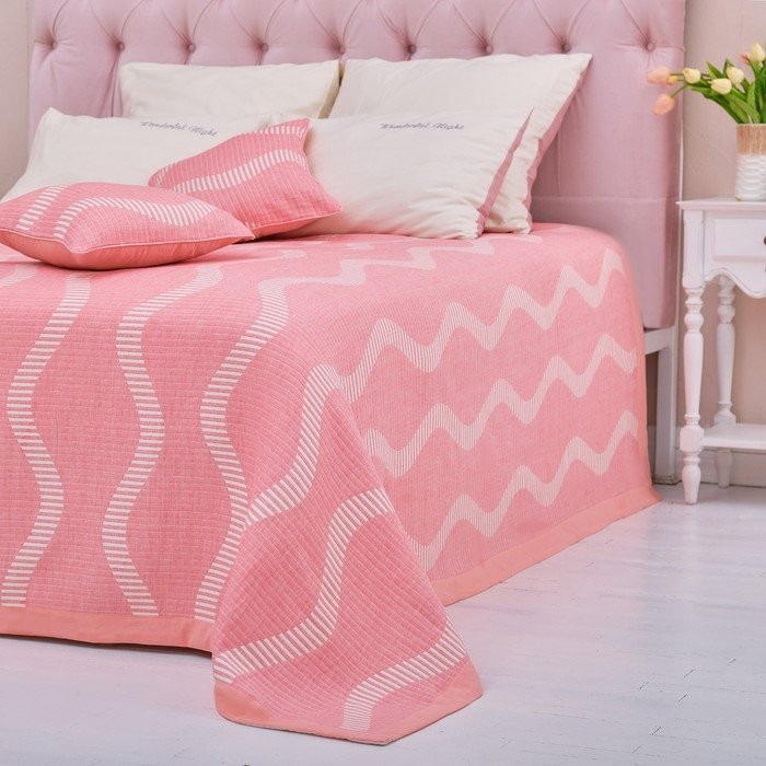 Покрывало хлопковое Этель «Волны» 180×240 см, цвет розовый, 100% хлопок, 300гр/м2