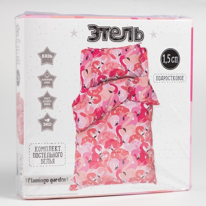Постельное бельё Этель 1,5 сп «Flamingo garden» 143×215 см, 150×214 см, 50×70 см -1 шт, 100% хлопок, бязь