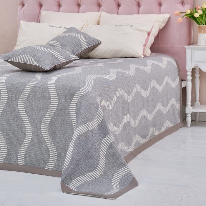 Покрывало хлопковое Этель «Волны» 150×240 см, цвет серый, 100% хлопок, 300гр/м2