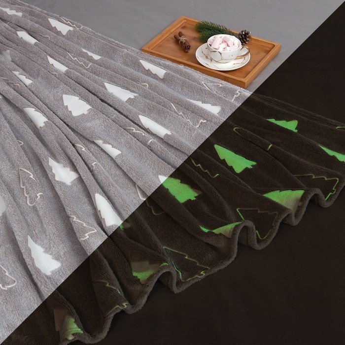 Плед светящийся в темноте Этель «Елочки» 150*200 см,100% п/э, корал-флис 220 гр/м2