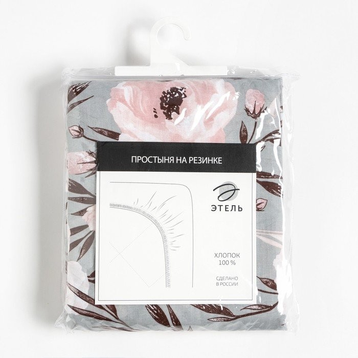 Простыня на резинке Этель 180х200×25 см, Peonies, 100% хлопок, поплин,125 г/м2