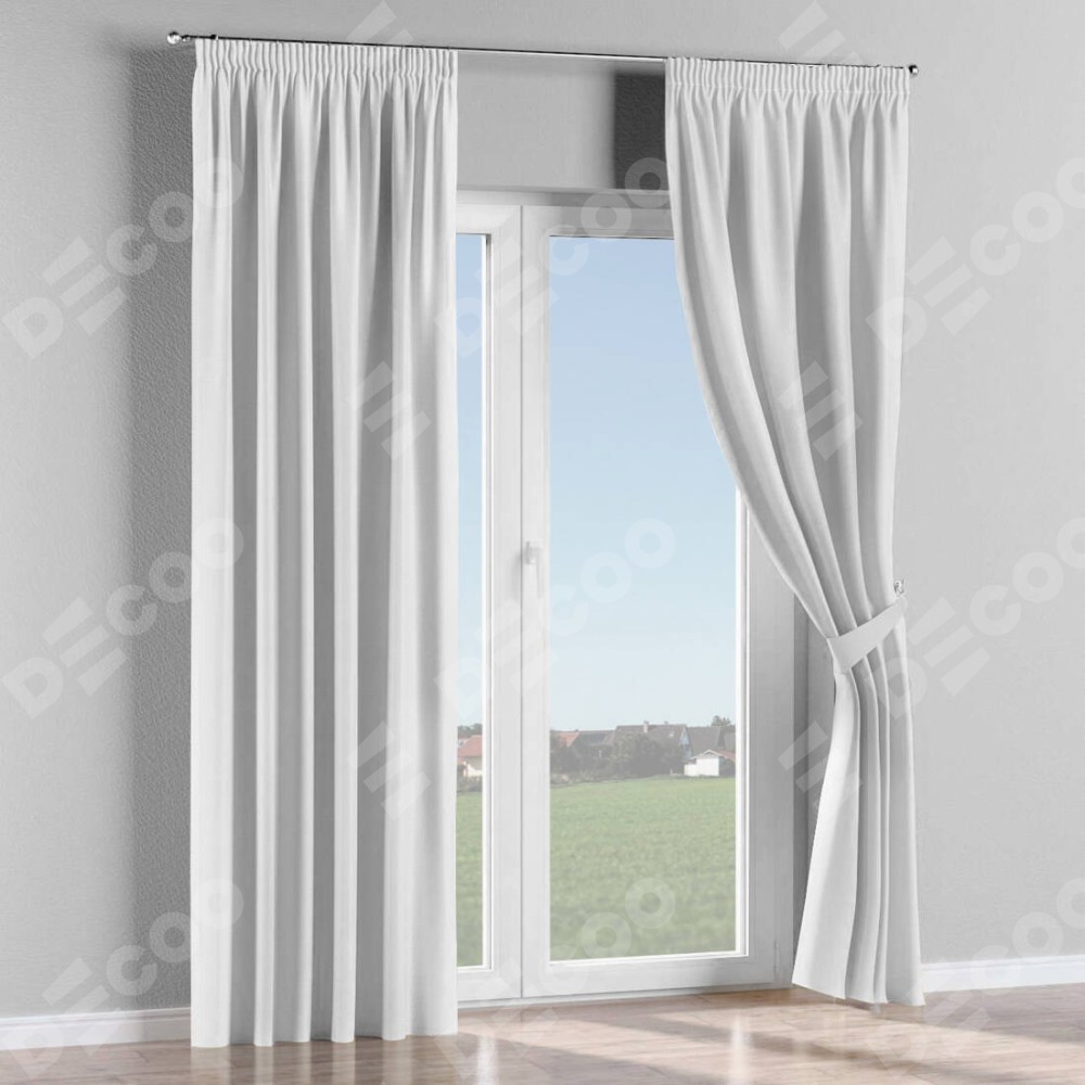 Комплект прямых штор, от производителя «Cortin», пошиты из ткани вельвет белый, артикул ткани 10810. С изнаночной стороны в верхней части штор пристрачивается шторная лента с декоративными складками «Карандаш». Для создания элегантных складок прямые шторы шьются по стандарту с коэффициентом 1:2 (на 100 см. ширины проёма 200 см. ширины ткани).