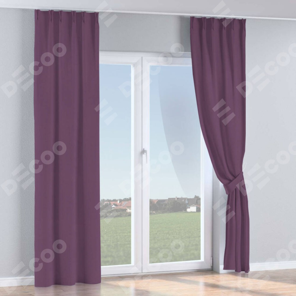Комплект прямых штор, от производителя «Cortin», пошиты из ткани блэкаут однотонный фуксия, артикул ткани 88303. С изнаночной стороны в верхней части штор пристрачивается шторная лента с декоративными складками «Кустик». Для создания элегантных складок прямые шторы шьются по стандарту с коэффициентом 1:2 (на 100 см. ширины проёма 200 см. ширины ткани).