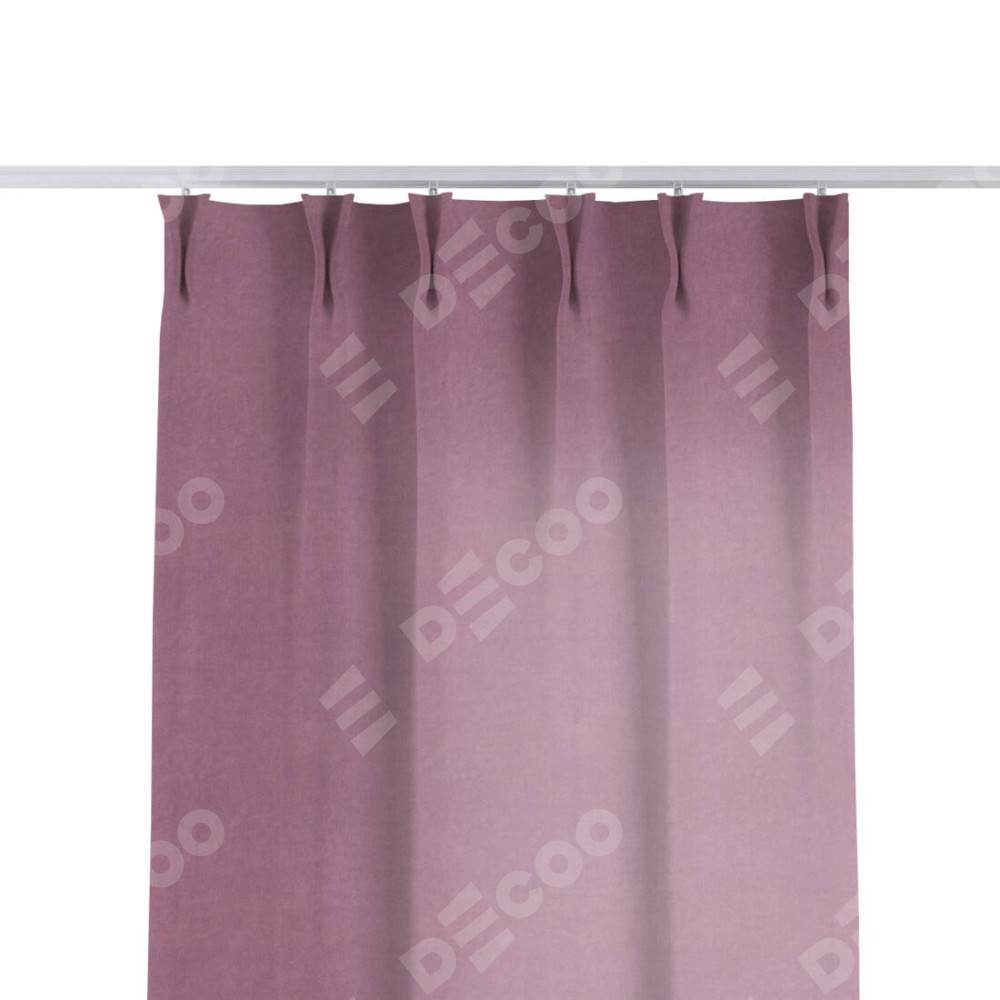 Комплект прямых штор, от производителя «Cortin», пошиты из ткани вельвет лиловый, артикул ткани 17752. С изнаночной стороны в верхней части штор пристрачивается шторная лента с декоративными складками «Кустик». Для создания элегантных складок прямые шторы шьются по стандарту с коэффициентом 1:2 (на 100 см. ширины проёма 200 см. ширины ткани).