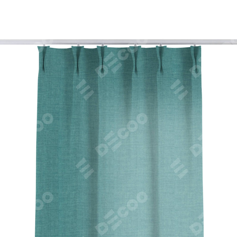 Комплект прямых штор, от производителя «Cortin», пошиты из ткани лён бирюза, артикул ткани 7446. С изнаночной стороны в верхней части штор пристрачивается шторная лента с декоративными складками «Кустик». Для создания элегантных складок прямые шторы шьются по стандарту с коэффициентом 1:2 (на 100 см. ширины проёма 200 см. ширины ткани).