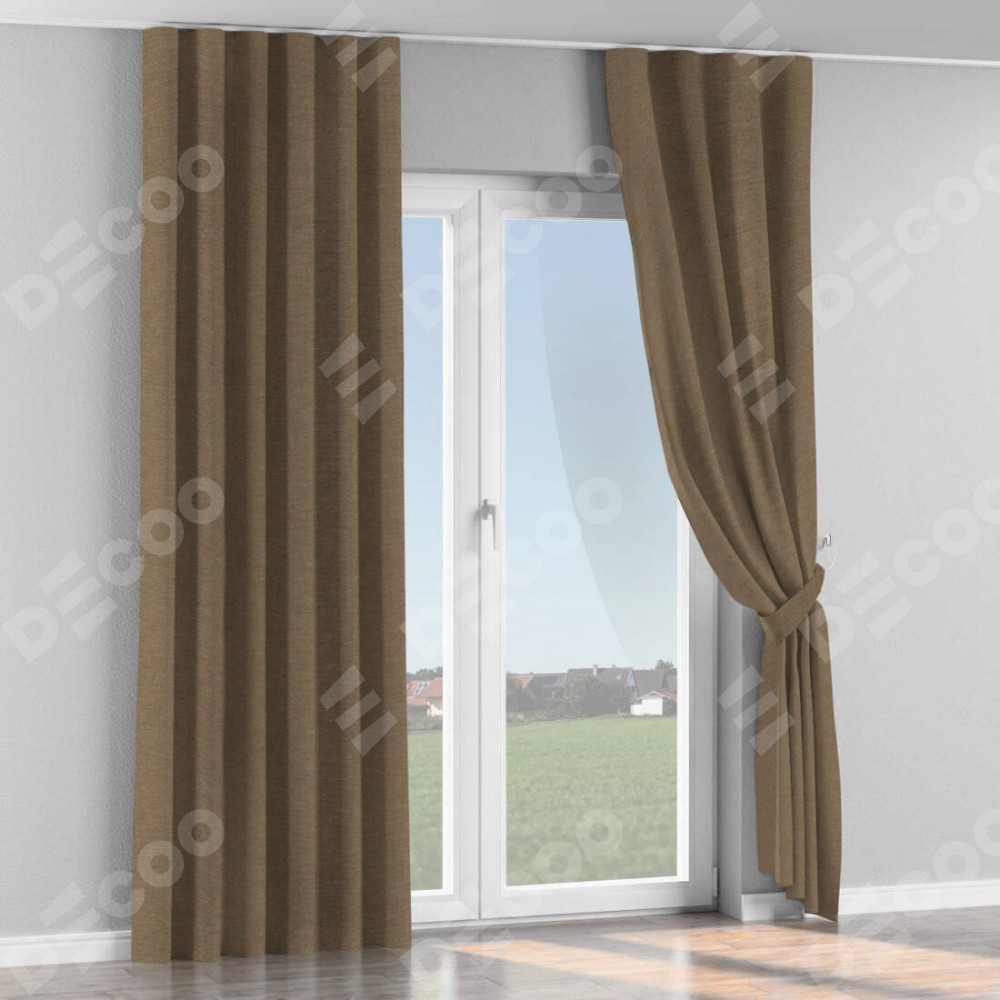 Комплект прямых штор, от производителя «Cortin», пошиты из ткани лён светло-коричневый, артикул ткани 53434. С изнаночной стороны в верхней части штор пристрачивается шторная лента с декоративными складками «Волна». Для создания элегантных складок прямые шторы шьются по стандарту с коэффициентом 1:2 (на 100 см. ширины проёма 200 см. ширины ткани).