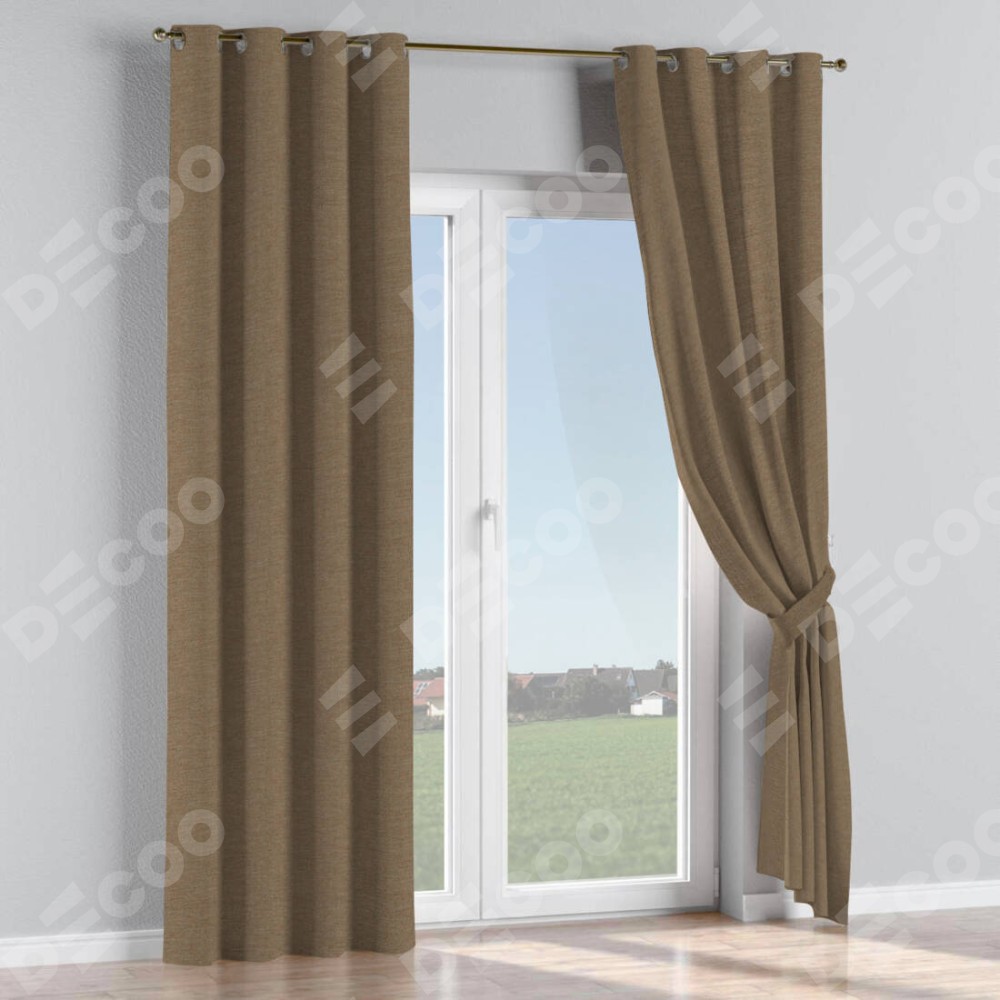 Комплект прямых штор, от производителя «Cortin», пошиты из ткани лён светло-коричневый, артикул ткани 53434. Данная модель пошита на люверсах, комплектуется на выбор круглым карнизом и подходит для монтажа на стену или потолок. Прямые шторы на люверсах шьются по стандарту с коэффициентом 1/2 (на 100 см. ширины проёма 200 см. ширины ткани), отличительным преимуществом данной модели является простой способ монтажа. Достаточно повесить ее на трубу и штора готова!