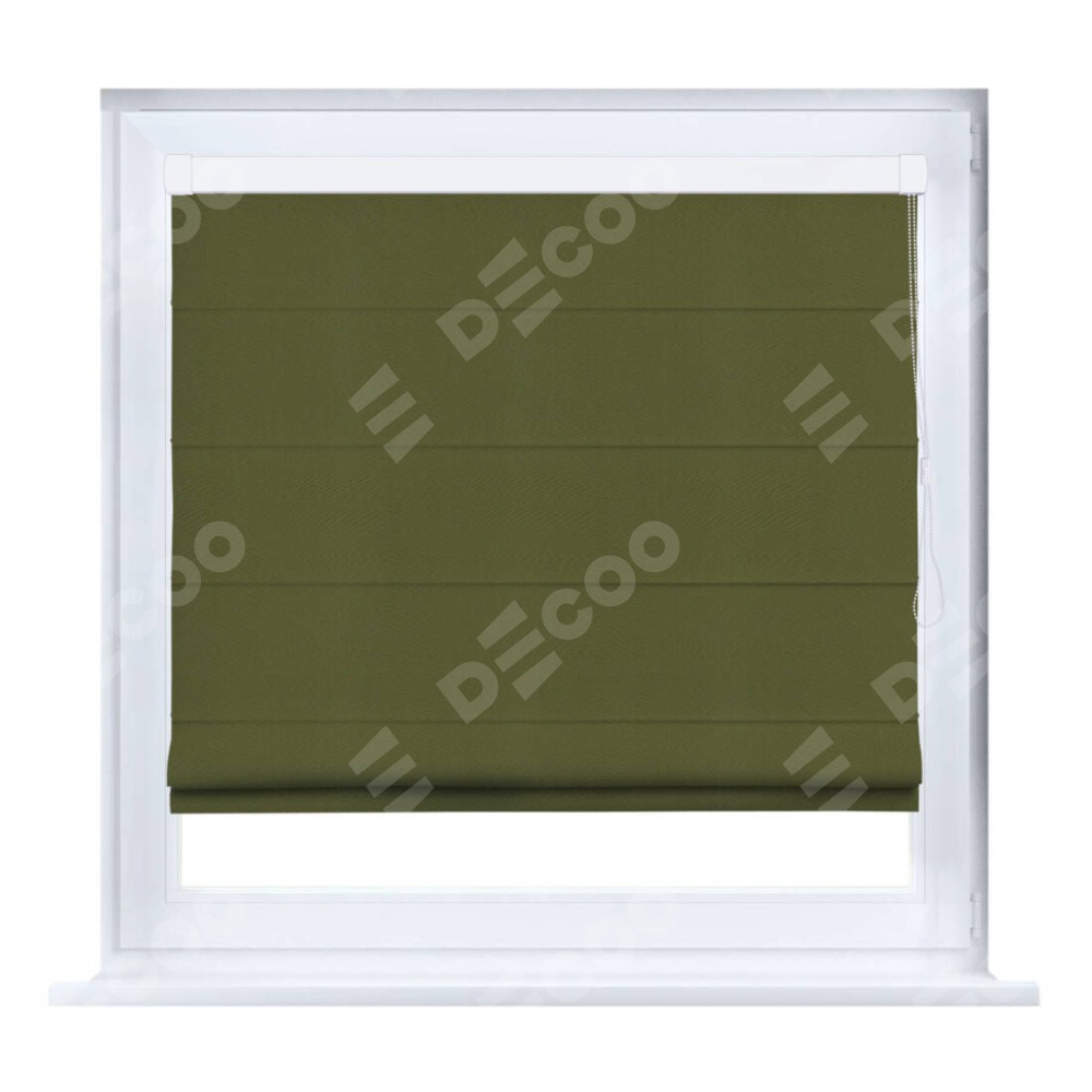 Римская штора производителя «Cortin», устанавливается на створку окна, пошита из ткани блэкаут однотонный зелёный, артикул 81859. Штора шьётся по индивидуальным размерам, для данного типа римской шторы возможная ширина от 35 до 150 см., высота до 250 см.
