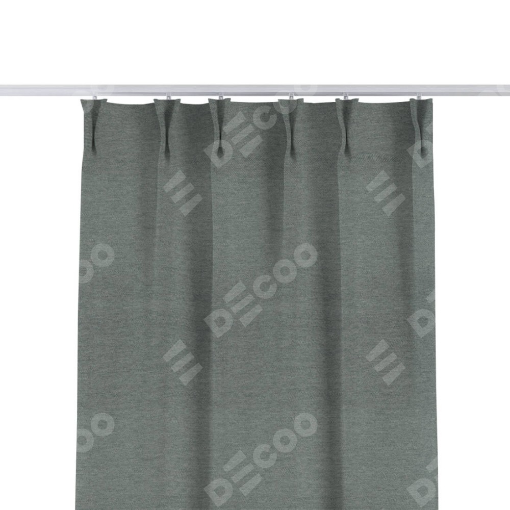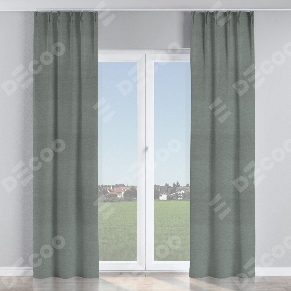 Комплект прямых штор, от производителя «Cortin», пошиты из ткани твид блэкаут серый, артикул ткани 21577. С изнаночной стороны в верхней части штор пристрачивается шторная лента с декоративными складками «Кустик». Для создания элегантных складок прямые шторы шьются по стандарту с коэффициентом 1:2 (на 100 см. ширины проёма 200 см. ширины ткани).