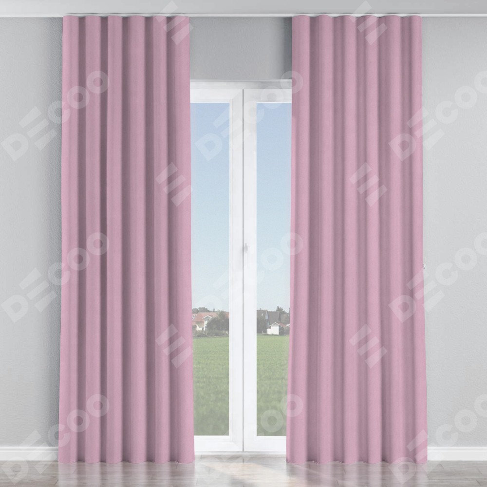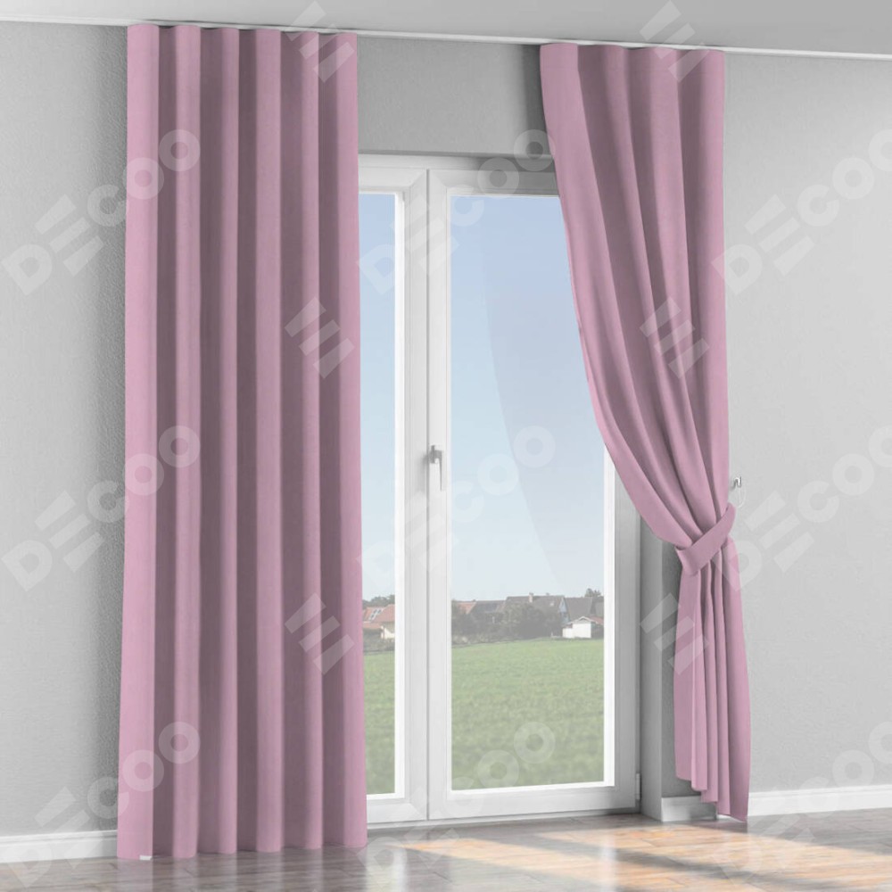Комплект прямых штор, от производителя «Cortin», пошиты из ткани pipa блэкаут розовый, артикул ткани 12091. С изнаночной стороны в верхней части штор пристрачивается шторная лента с декоративными складками «Волна». Для создания элегантных складок прямые шторы шьются по стандарту с коэффициентом 1:2 (на 100 см. ширины проёма 200 см. ширины ткани).