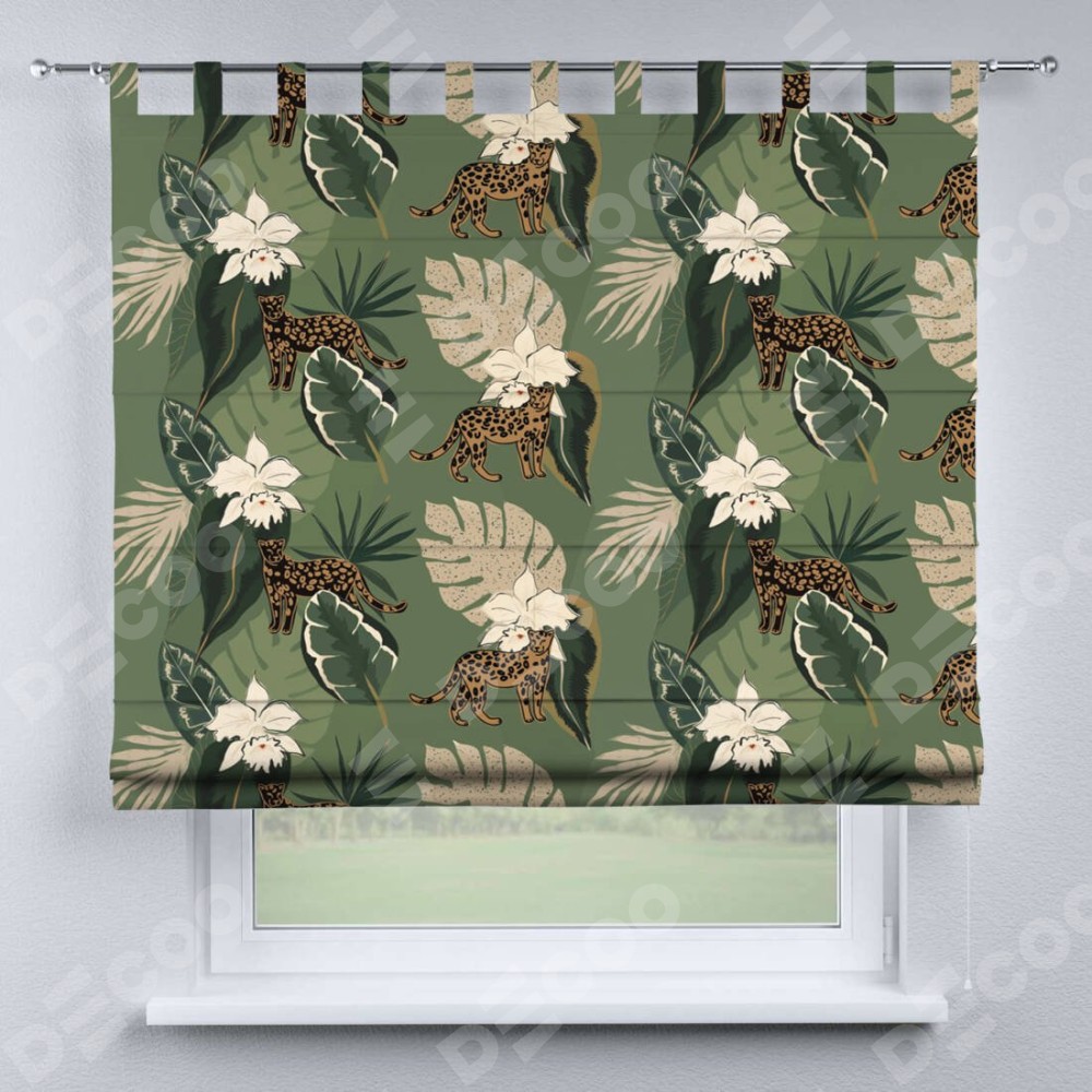 Римская штора производителя «Cortin», используется для проёма, пошита из ткани блэкаут с нанесением сублимационной печати «В тропическом лесу». Данная модель пошита на петлях, комплектуется на выбор круглым карнизом и подходит для монтажа на стену. Римская штора на петлях имеет простую систему регулировки высоты, отличительным преимуществом данной модели является простой способ монтажа. Достаточно повесить ее на трубу и штора готова!