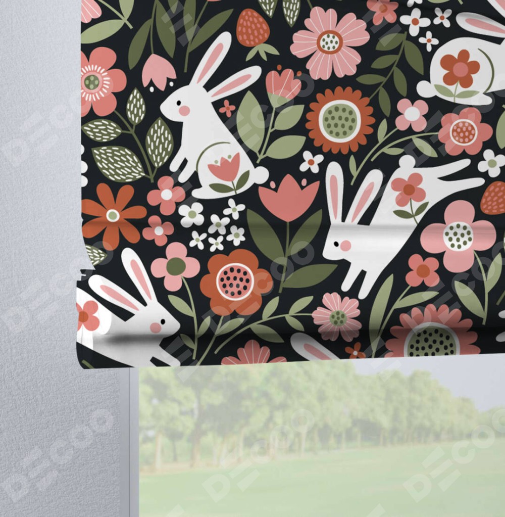 Римская штора производителя «Cortin», используется для проёма, пошита из ткани блэкаут с нанесением сублимационной печати «Зайчики в цветнике». Данная модель пошита на петлях, комплектуется на выбор круглым карнизом и подходит для монтажа на стену. Римская штора на петлях имеет простую систему регулировки высоты, отличительным преимуществом данной модели является простой способ монтажа. Достаточно повесить ее на трубу и штора готова!