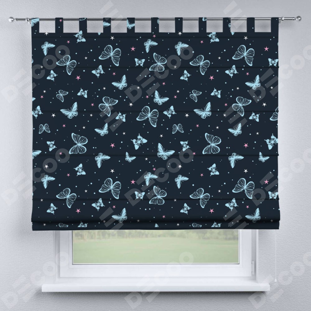Римская штора производителя «Cortin», используется для проёма, пошита из ткани блэкаут с нанесением сублимационной печати «Неоновые бабочки». Данная модель пошита на петлях, комплектуется на выбор круглым карнизом и подходит для монтажа на стену. Римская штора на петлях имеет простую систему регулировки высоты, отличительным преимуществом данной модели является простой способ монтажа. Достаточно повесить ее на трубу и штора готова!