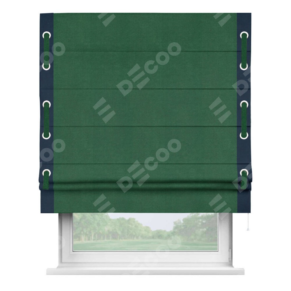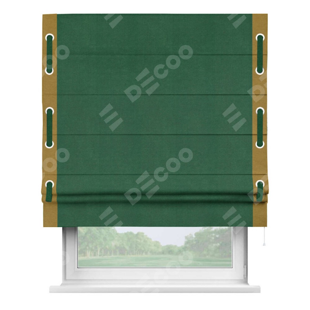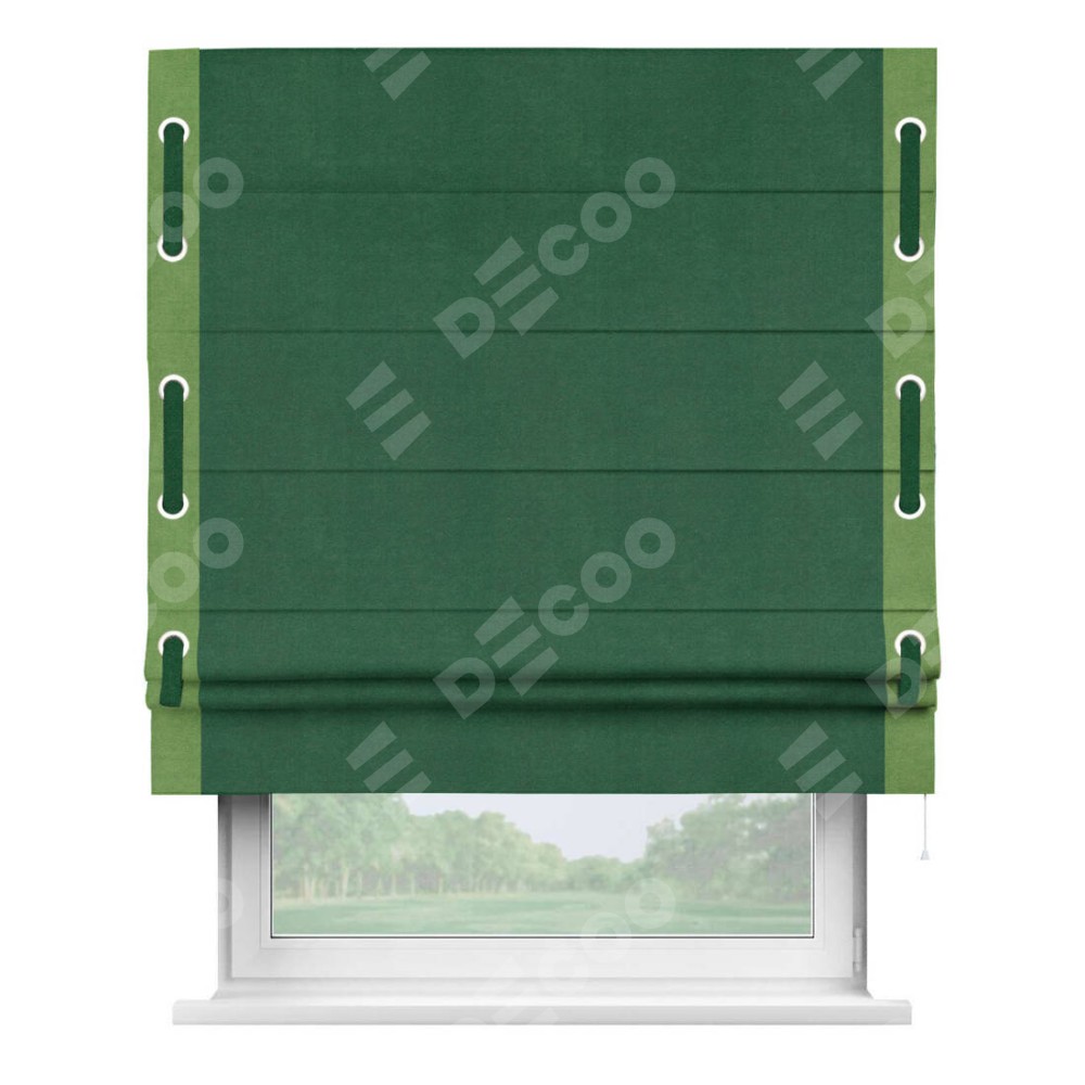 Римская штора «Кортин» с кантом Стрим Дуо (люверсы с пояском), для проема, ткань вельвет зеленый