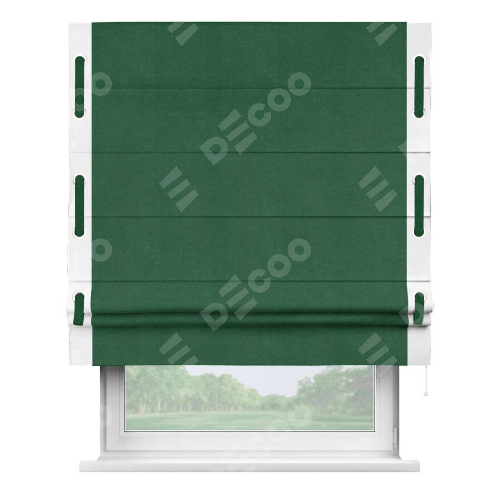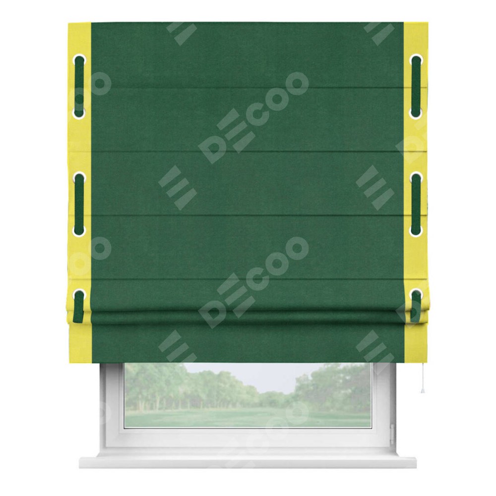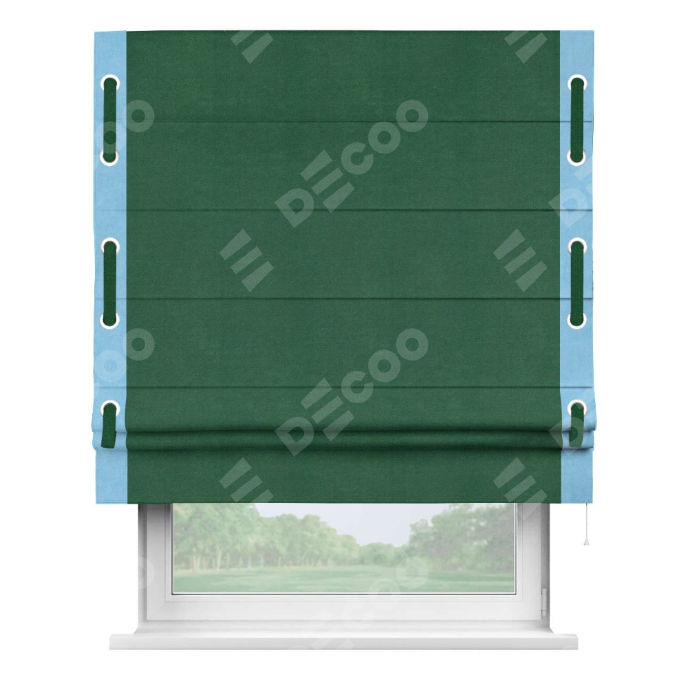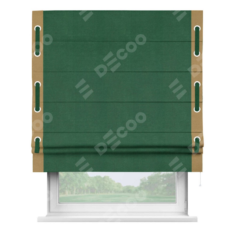 Римская штора «Кортин» с кантом Стрим Дуо (люверсы с пояском), для проема, ткань вельвет зеленый