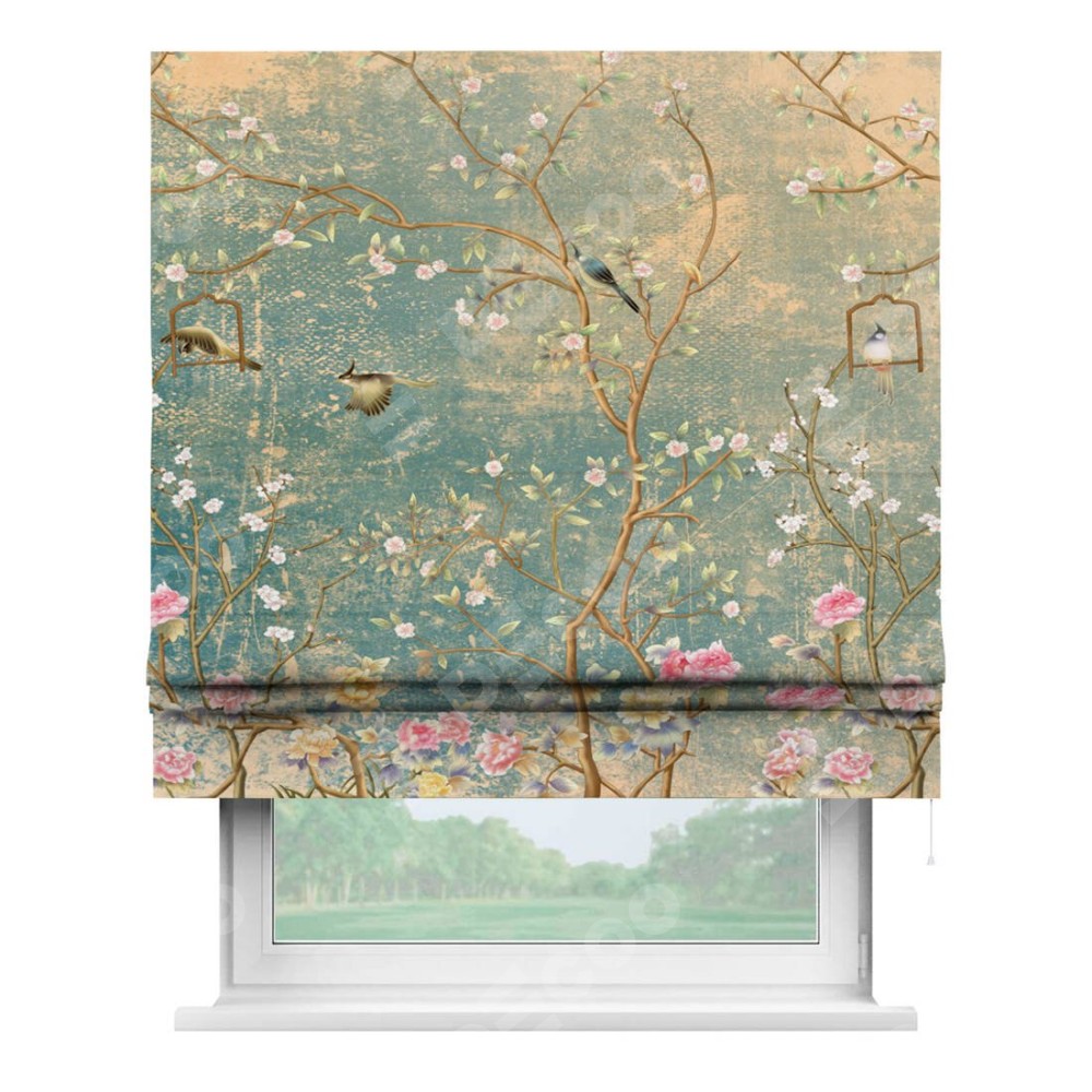 Римская штора производителя «Cortin», используется для проёма, пошита из ткани блэкаут с нанесением сублимационной печати «Цветущий сад». Имеет универсальный механизм и подходит для монтажа: на потолок, на стену и в нишу.