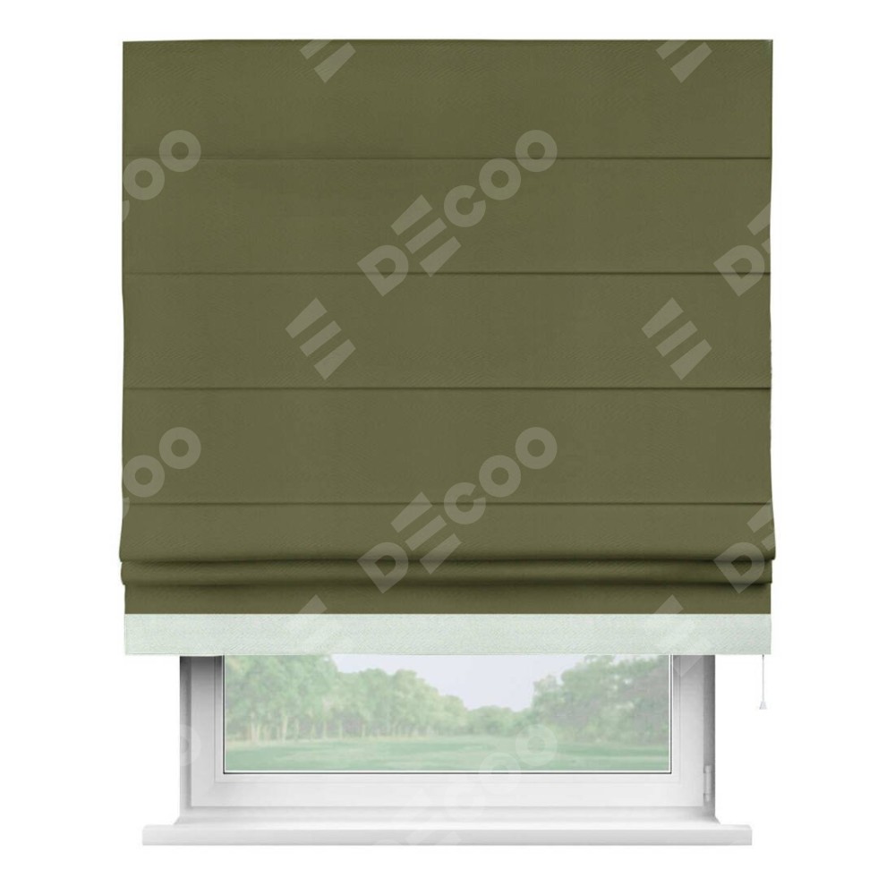 Римская штора «Кортин» с кантом Джестер, для проема, ткань блэкаут однотонный зелёный