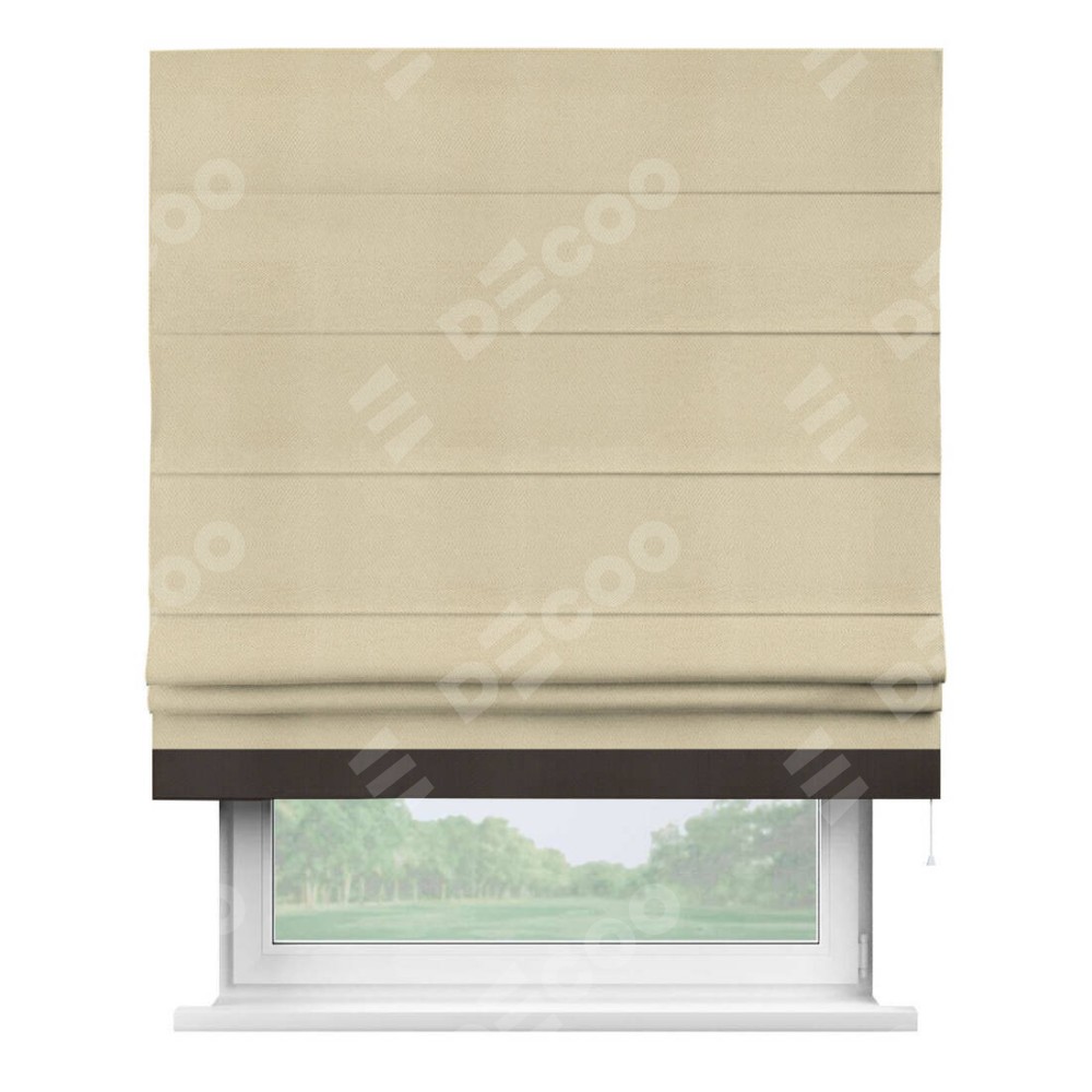 Римская штора производителя «Cortin», используется для проёма, пошита из ткани блэкаут однотонный милано латте, артикул ткани 05. Отделка шторы кантом «Джестер», ткань для канта используется из блэкаута однотонного разной расцветки на выбор. Имеет универсальный механизм и подходит для монтажа: на потолок, на стену и в нишу.