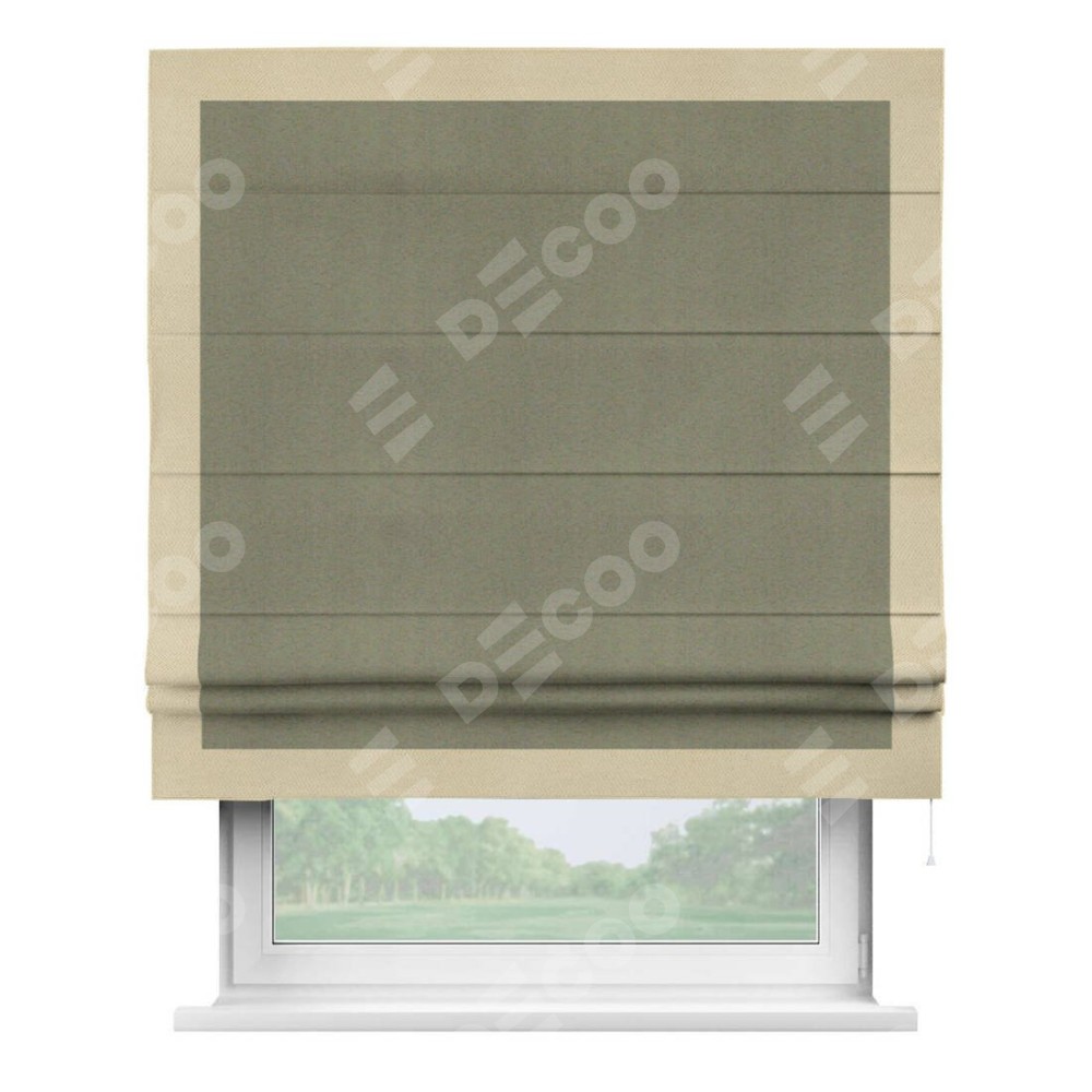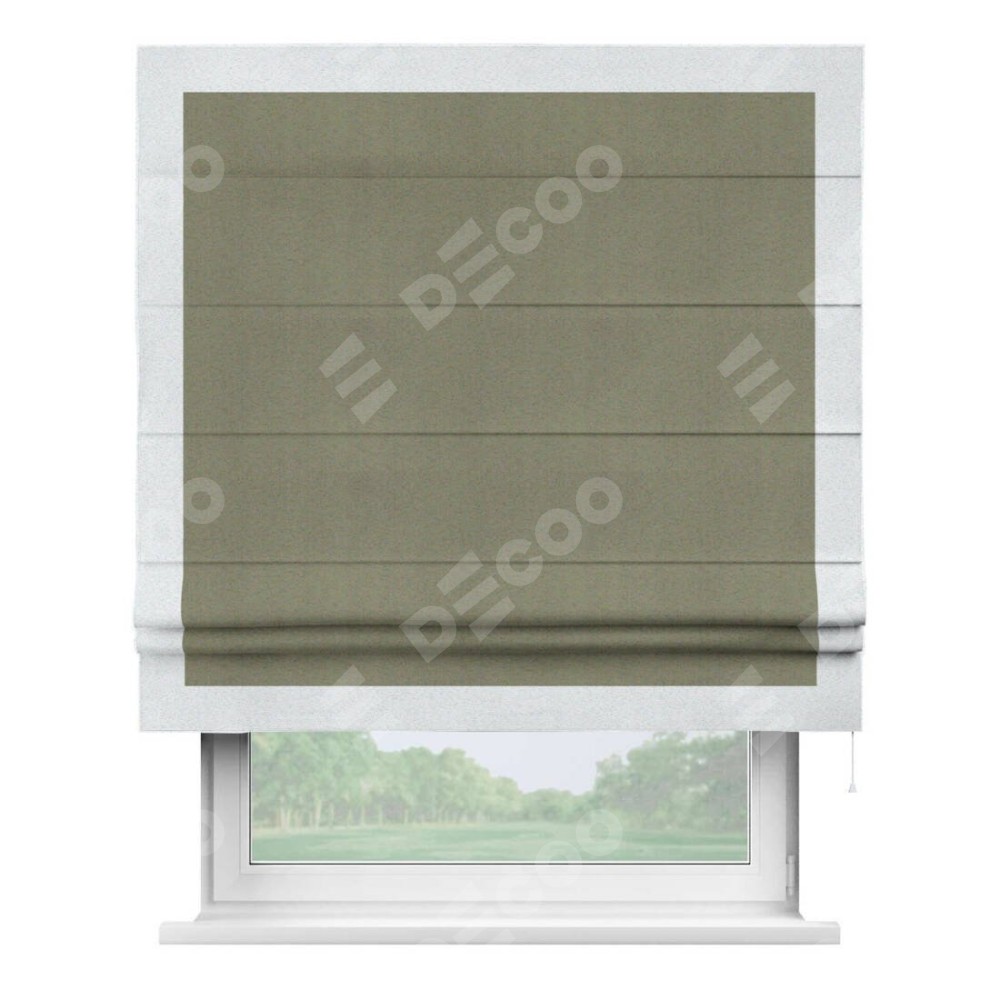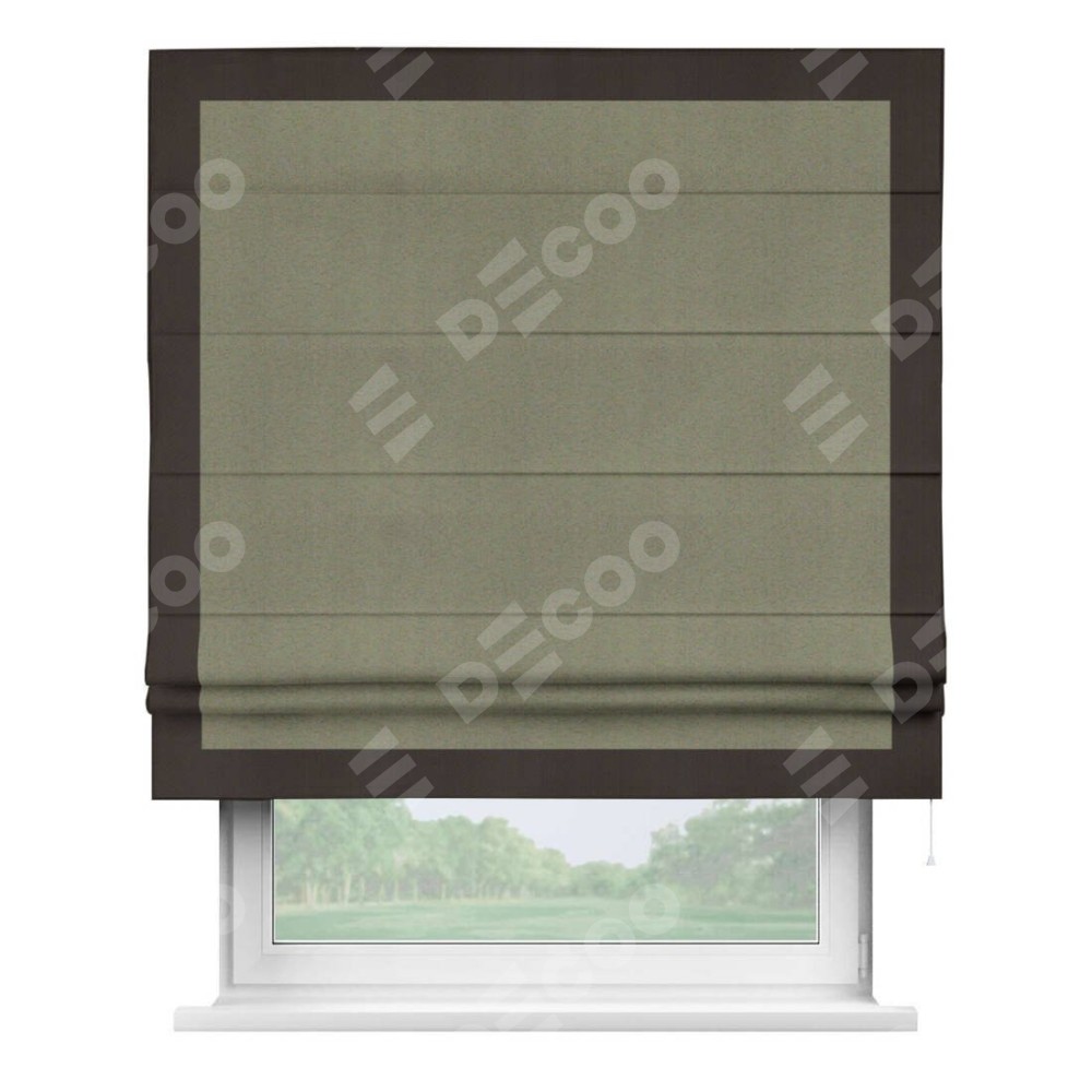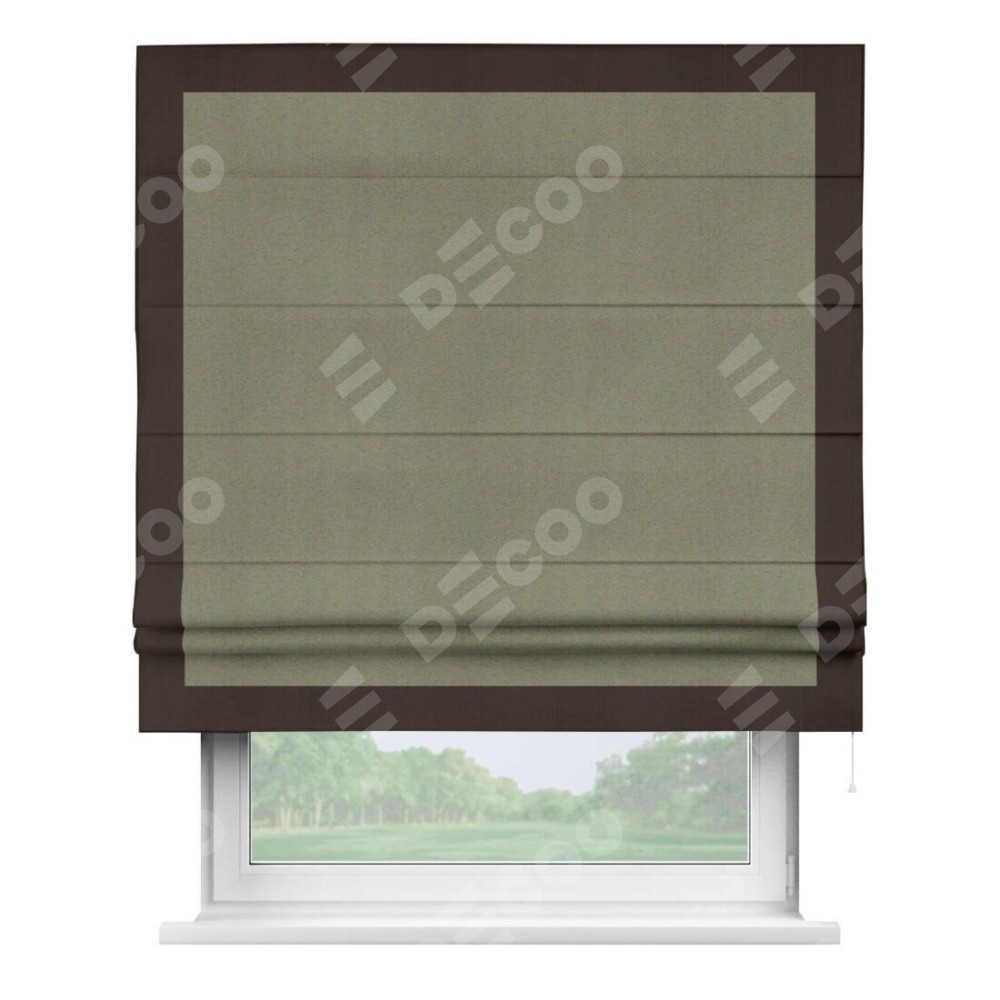 Римская штора «Кортин» с кантом Чесс, для проема, ткань блэкаут однотонный серо-коричневый