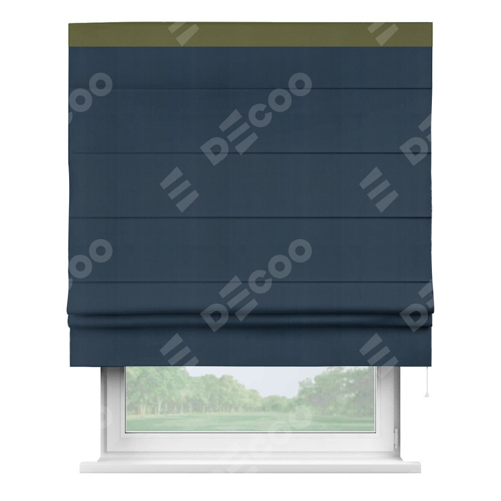 Римская штора «Кортин» с кантом Кинг, для проема, ткань блэкаут однотонный синий