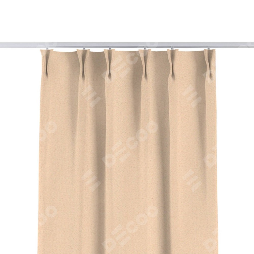 Комплект прямых штор, от производителя «Cortin», пошиты из ткани блэкаут с блеском бежевый, артикул ткани 34627. С изнаночной стороны в верхней части штор пристрачивается шторная лента с декоративными складками «Кустик». Обратная сторона основного материала черного цвета, что обеспечивает необходимую светонепроницаемость. Для создания элегантных складок прямые шторы шьются по стандарту с коэффициентом 1:2 (на 100 см. ширины проёма 200 см. ширины ткани).