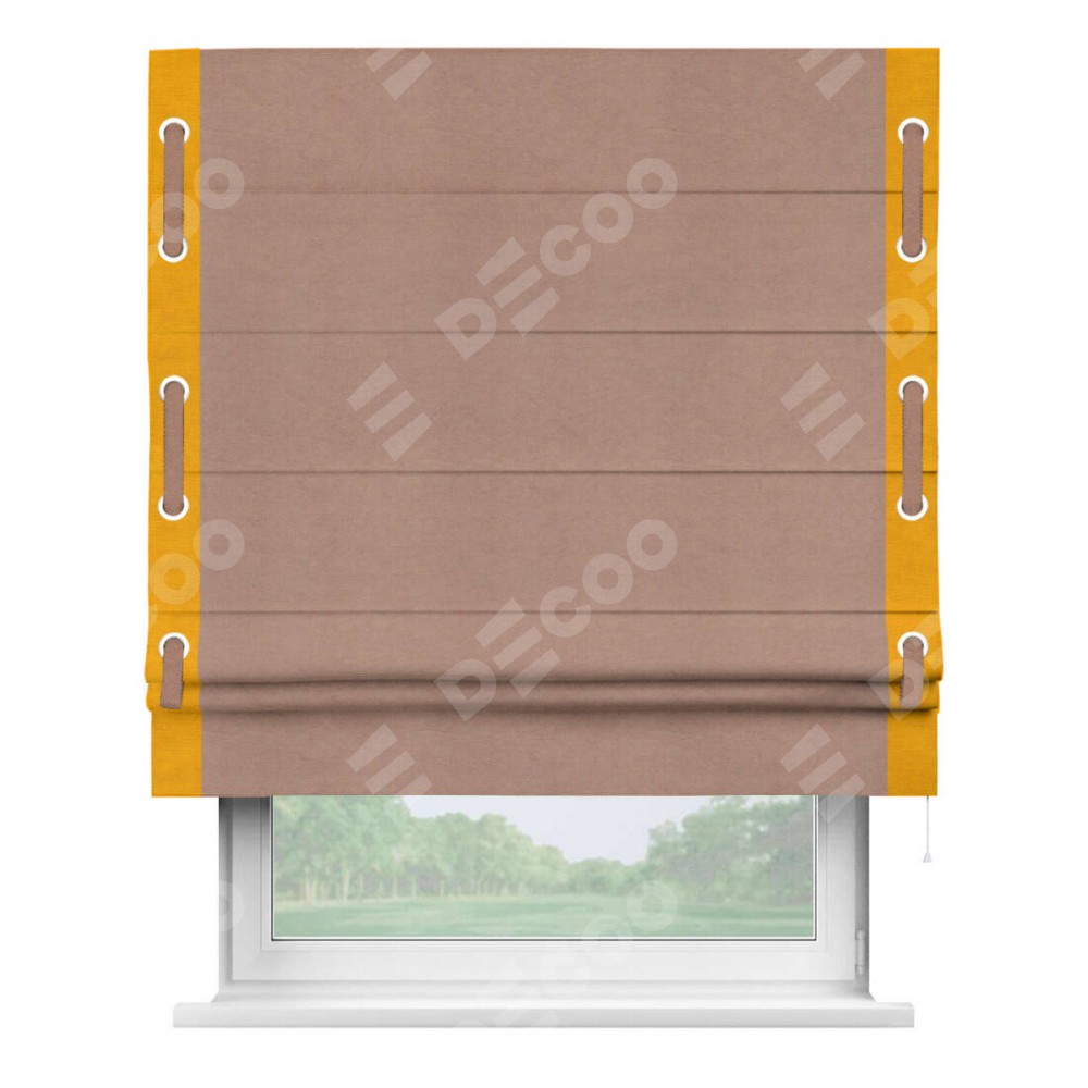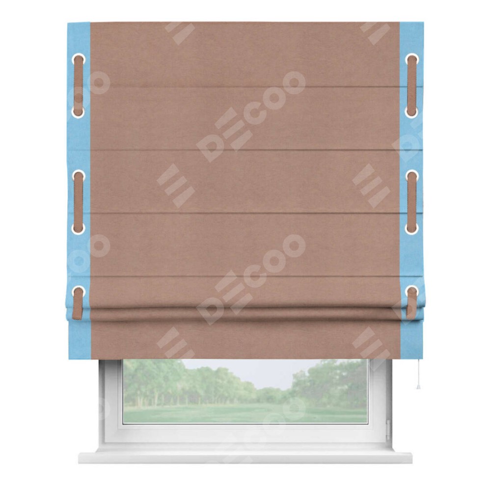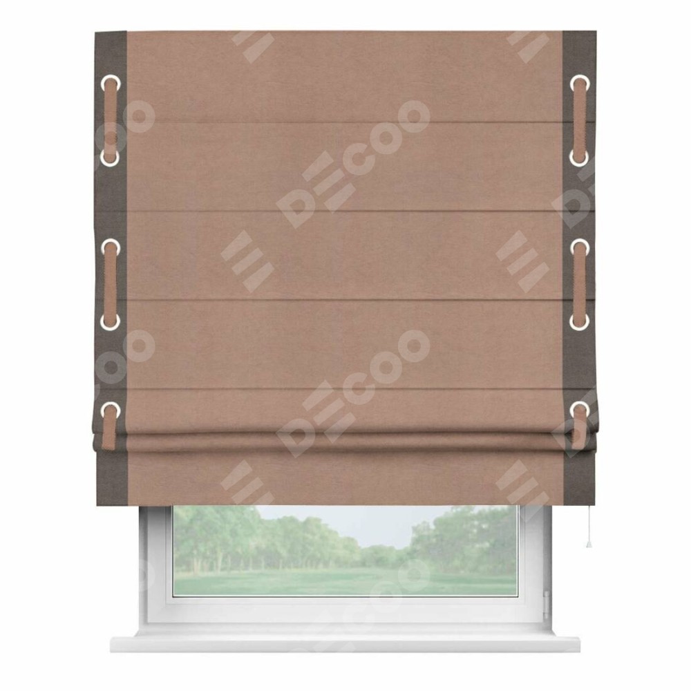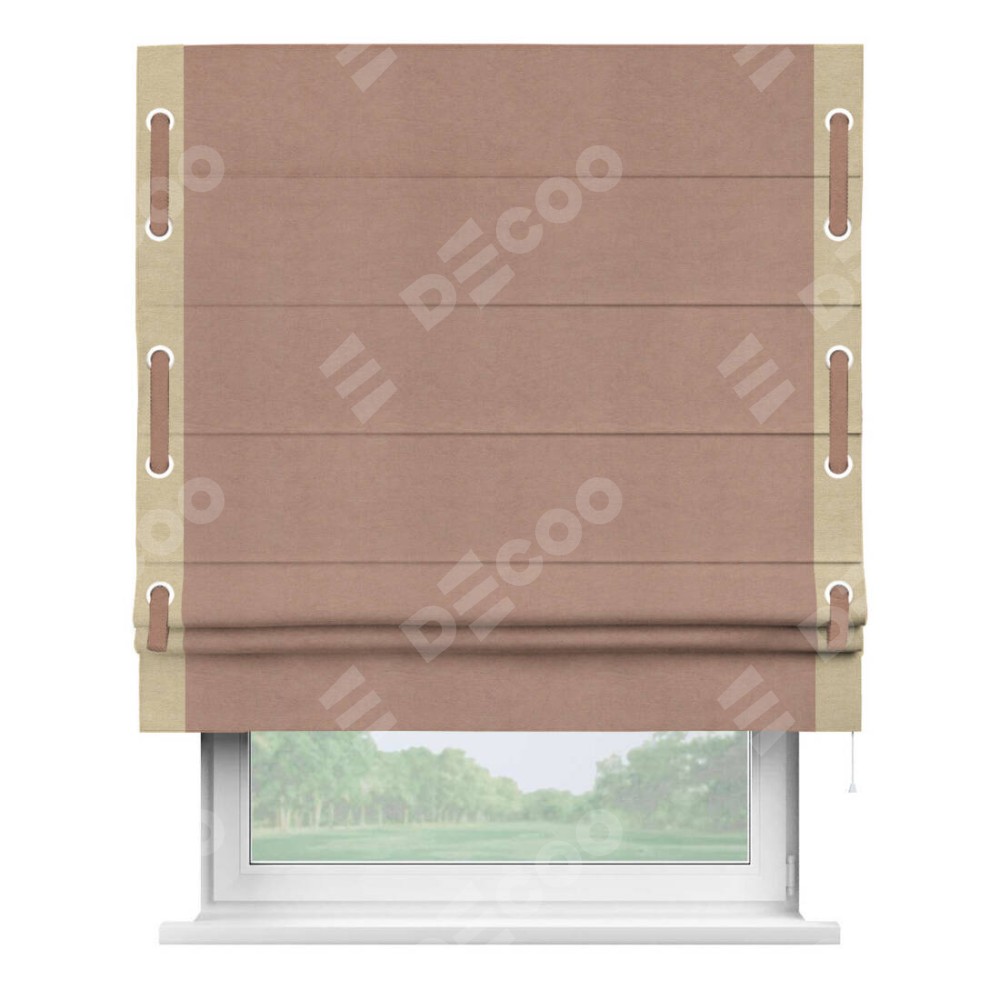 Римская штора «Кортин» с кантом Стрим Дуо (люверсы с пояском), для проема, ткань вельвет брусничный джем