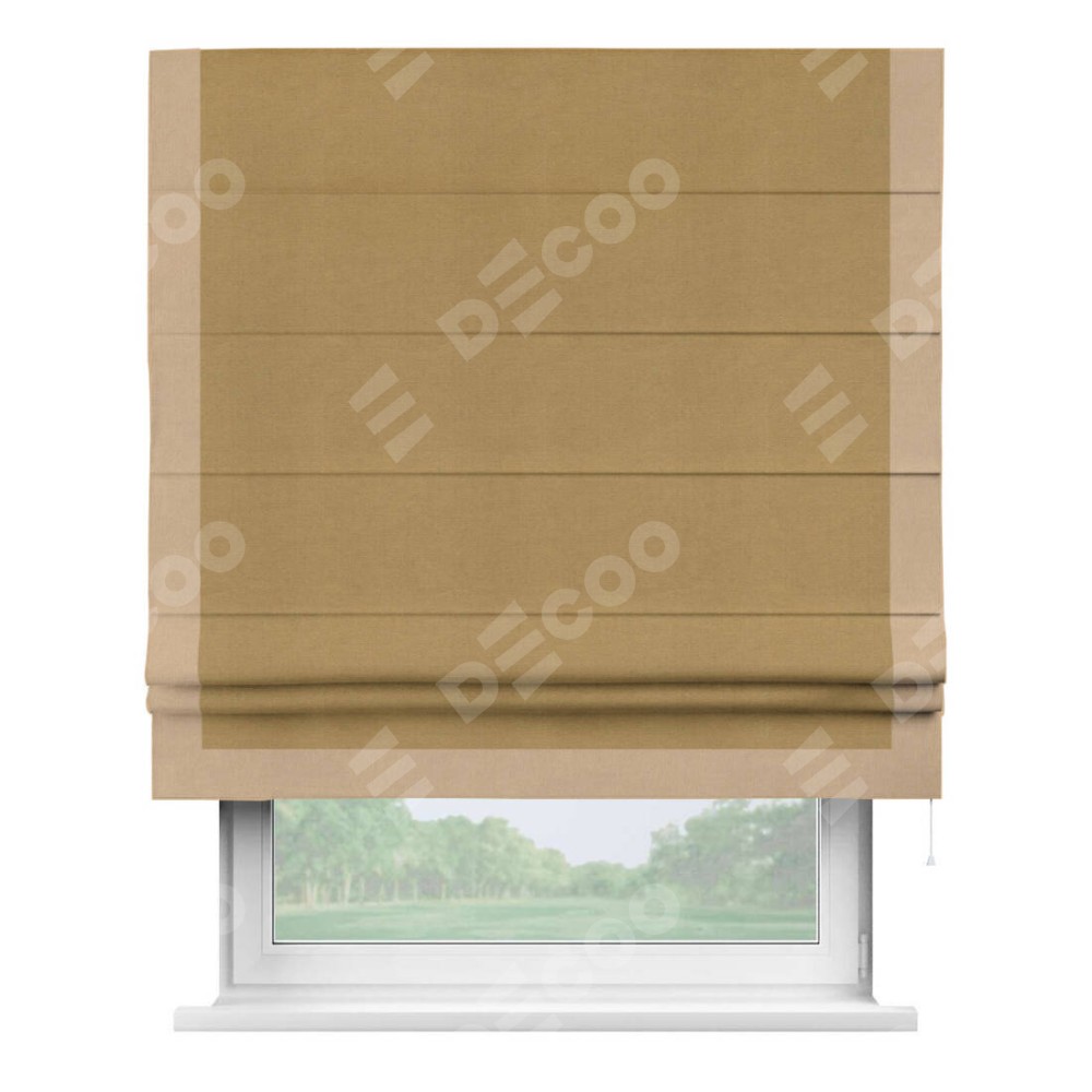 Римская штора производителя «Cortin», используется для проёма, пошита из ткани вельвет горчица, артикул ткани 17760. Отделка шторы кантом «Виктория», ткань для канта используется из вельвета разной расцветки на выбор. Имеет универсальный механизм и подходит для монтажа: на потолок, на стену и в нишу.