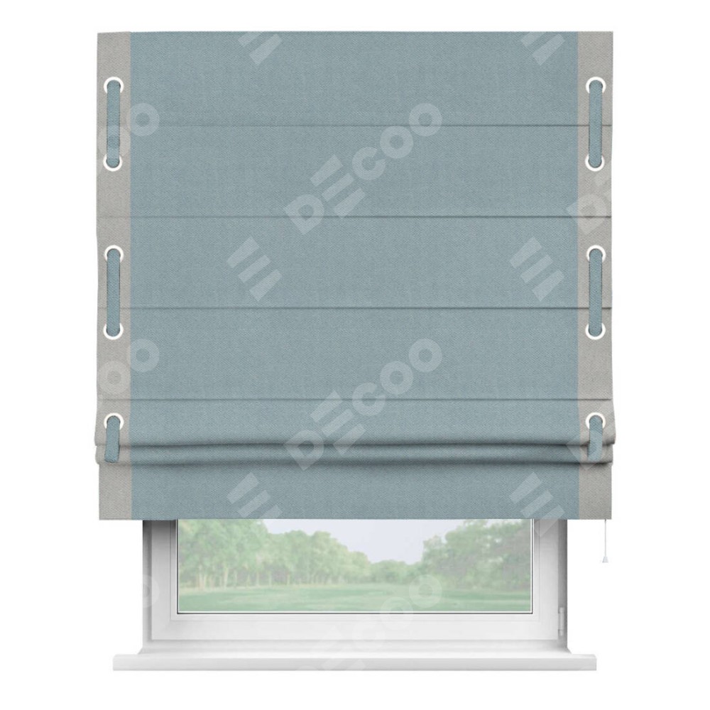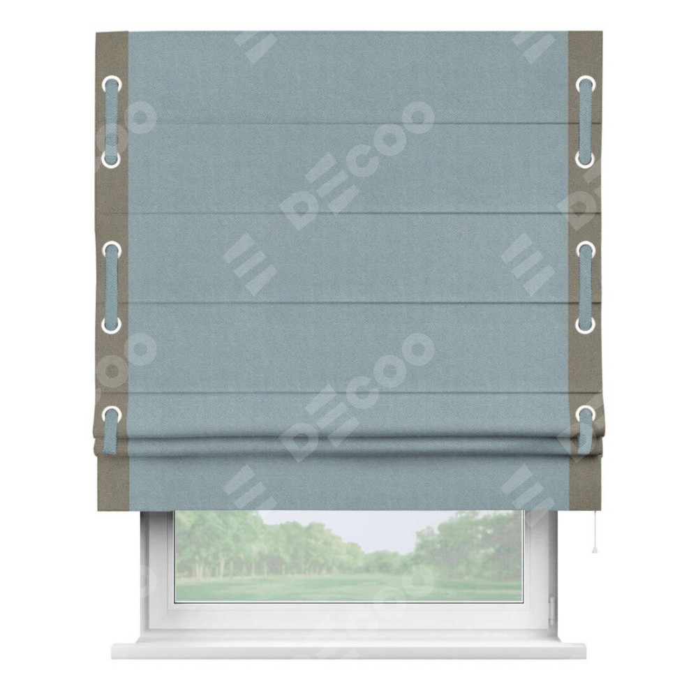 Римская штора «Кортин» с кантом Стрим Дуо (люверсы с пояском), для проема, ткань блэкаут с блеском синий