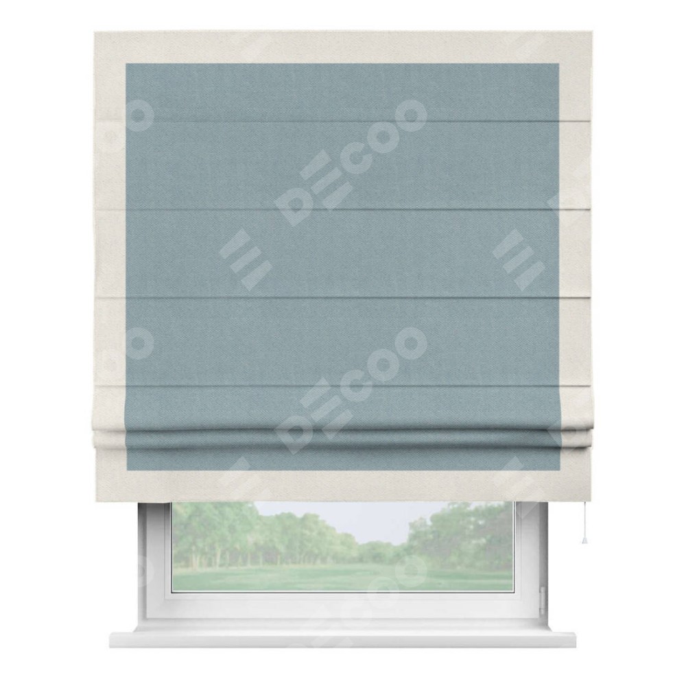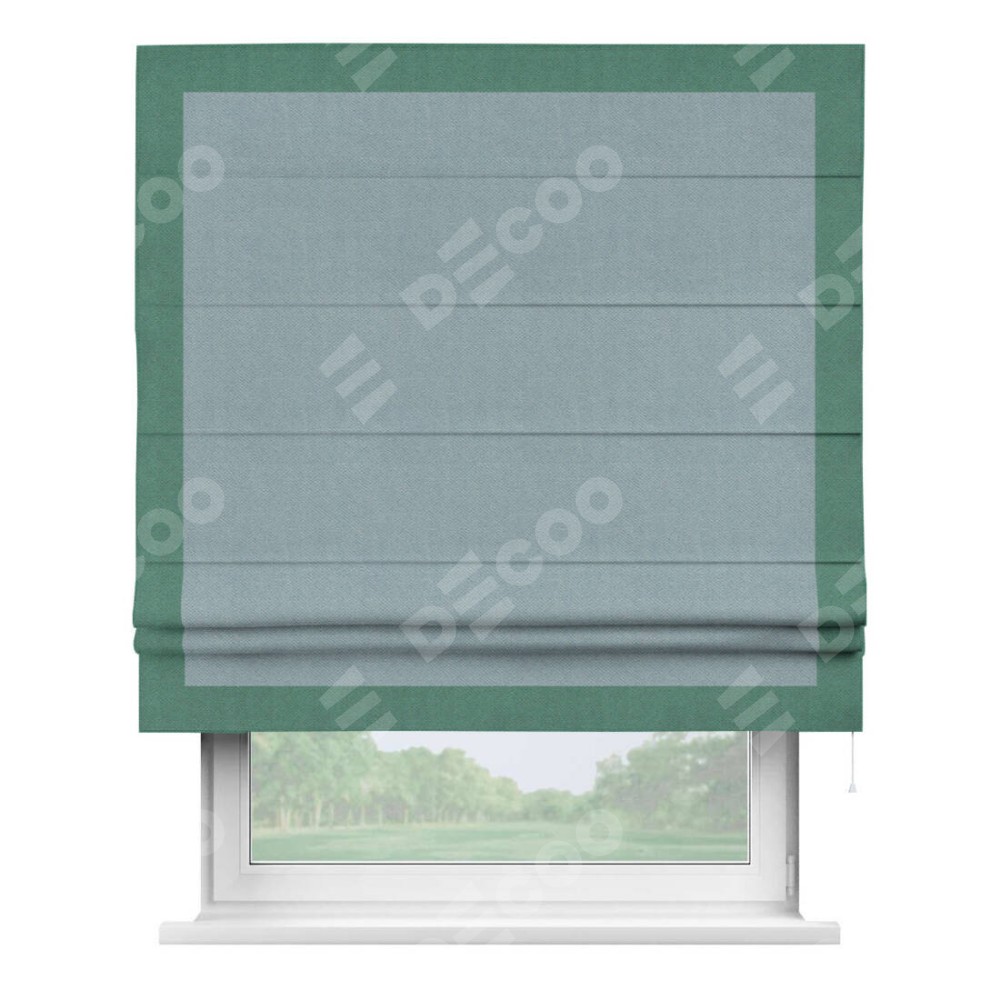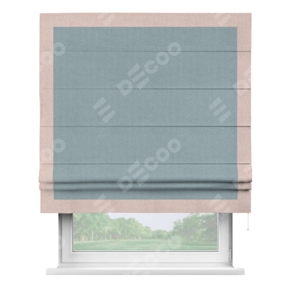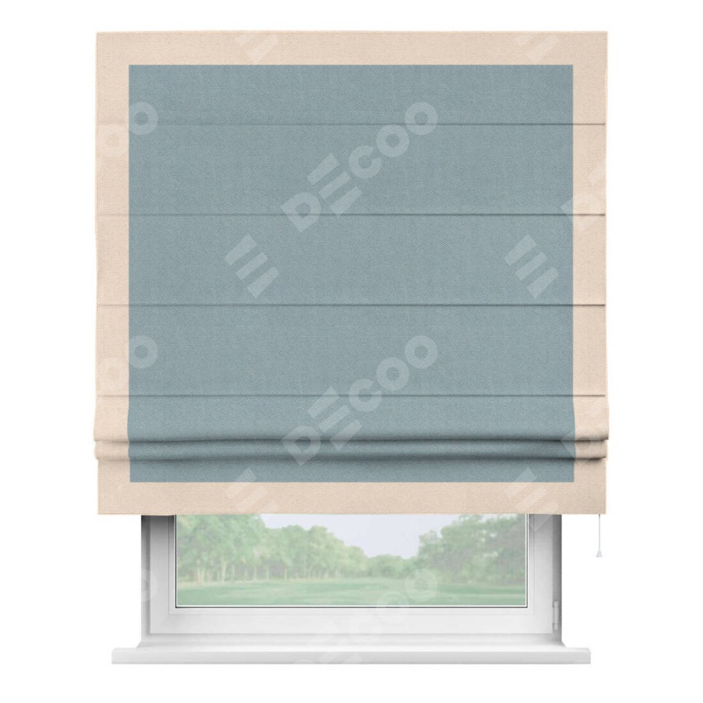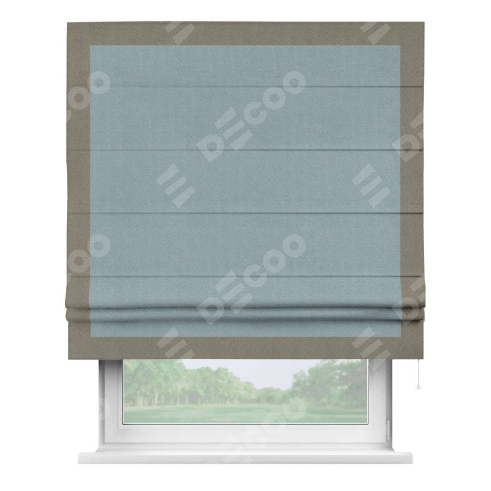 Римская штора «Кортин» с кантом Чесс, для проема, ткань блэкаут с блеском синий