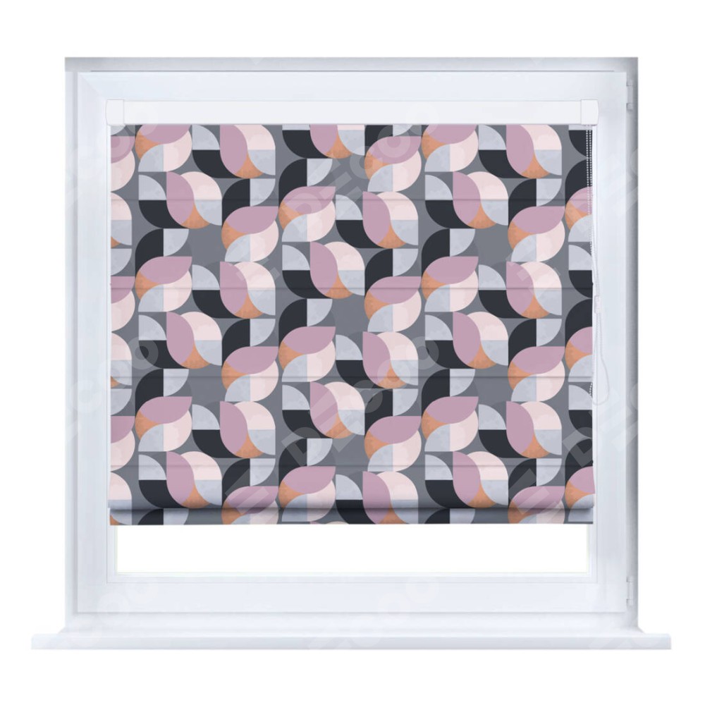 Римская штора производителя «Cortin», устанавливается на створку окна, пошита из ткани блэкаут с нанесением сублимационной печати «Абстрактный узор». Штора шьётся по индивидуальным размерам, для данного типа римской шторы возможная ширина от 35 до 150 см., высота до 250 см.