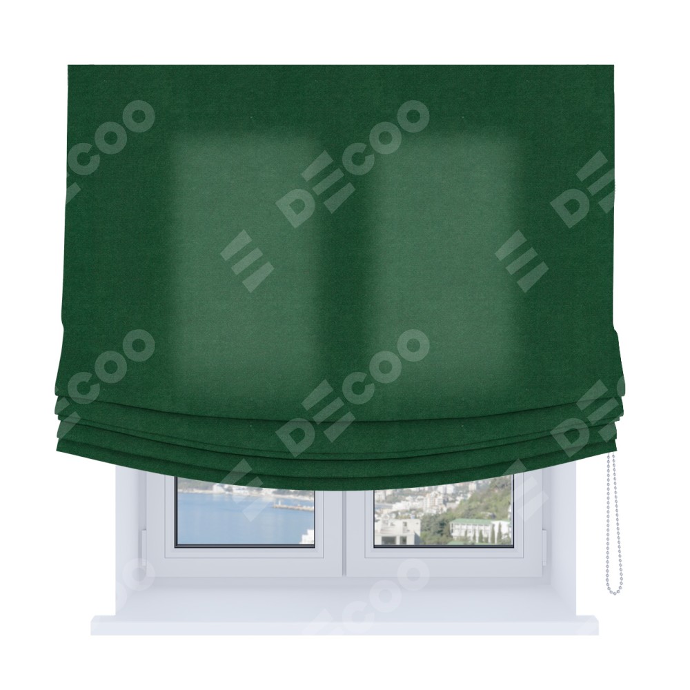 Римская штора Soft производителя «Cortin», используется для проёма, пошита из ткани вельвет зелёный, артикул ткани 85546. Имеет универсальный механизм и подходит для монтажа: на потолок, на стену и в нишу. В отличие от стандартных римских штор, римская штора Soft не имеет горизонтальных вставок и нижнего отвеса. Это позволяет ткани произвольно драпироваться в свободные мягкие складки.