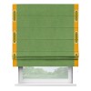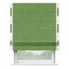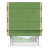 Римская штора производителя «Cortin», используется для проёма, пошита из ткани вельвет салатовый, артикул ткани 87072. Отделка шторы кантом «Стрим Дуо» на кантах расположены люверсы с пояском, ткань для канта используется из вельвета разной расцветки на выбор. Ткань для пояска обычно используется из основной ткани шторы, а так же можно сделать из любой расцветки по желанию. Имеет универсальный механизм и подходит для монтажа: на потолок, на стену и в нишу.