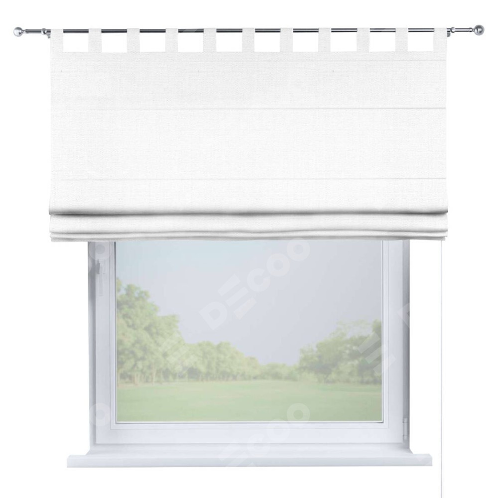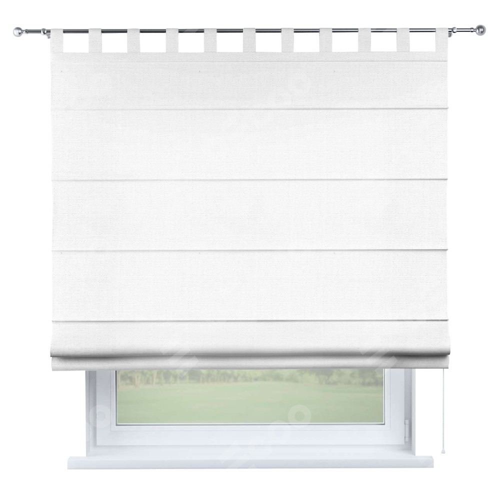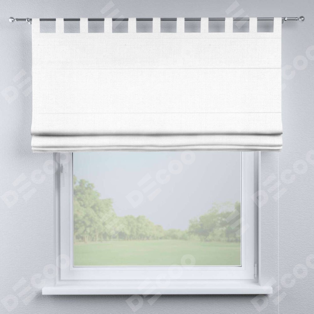 Римская штора производителя «Cortin», используется для проёма, пошита из ткани лён белый, артикул ткани 53430. Данная модель пошита на петлях, комплектуется на выбор круглым карнизом и подходит для монтажа на стену. Римская штора на петлях имеет простую систему регулировки высоты, отличительным преимуществом данной модели является простой способ монтажа. Достаточно повесить ее на трубу и штора готова!