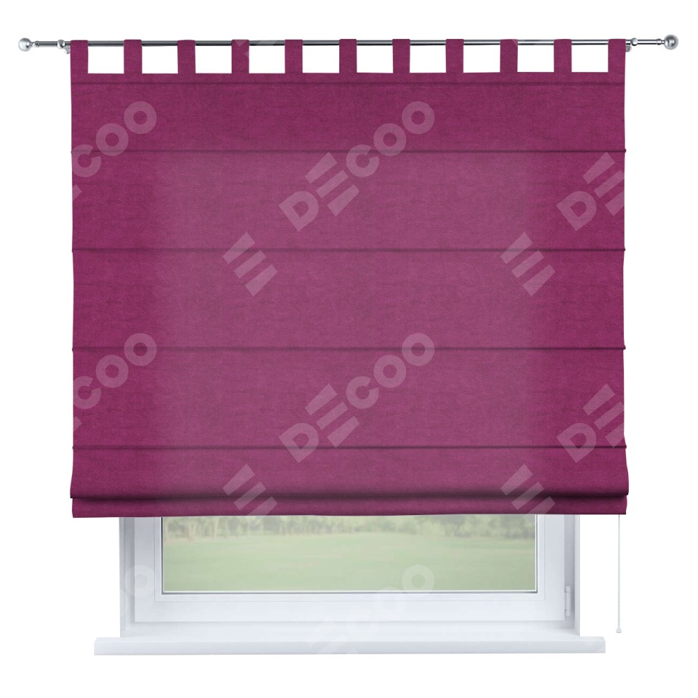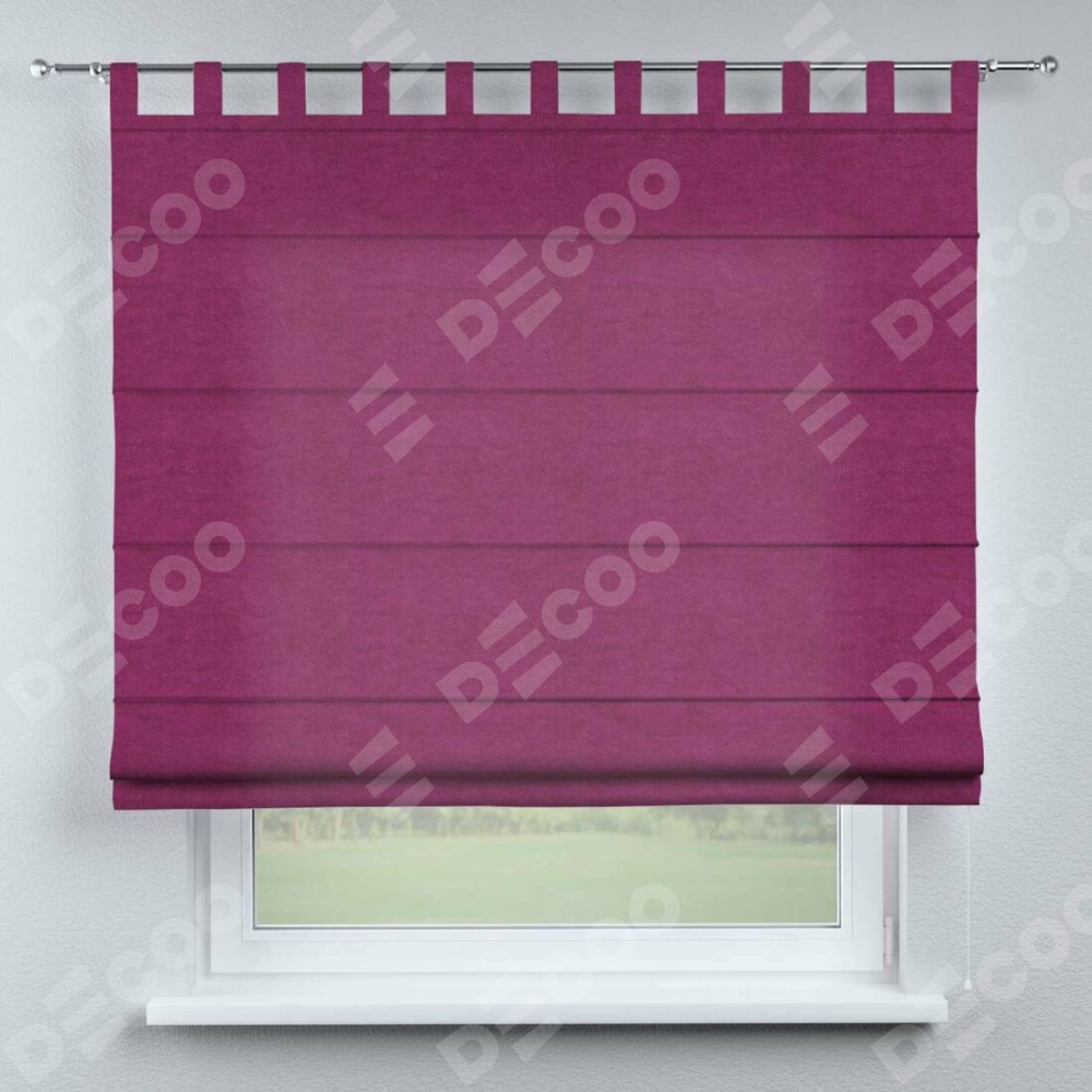 Римская штора производителя «Cortin», используется для проёма, пошита из ткани вельвет фиолетовый, артикул ткани 85552. Данная модель пошита на петлях, комплектуется на выбор круглым карнизом и подходит для монтажа на стену. Римская штора на петлях имеет простую систему регулировки высоты, отличительным преимуществом данной модели является простой способ монтажа. Достаточно повесить ее на трубу и штора готова!