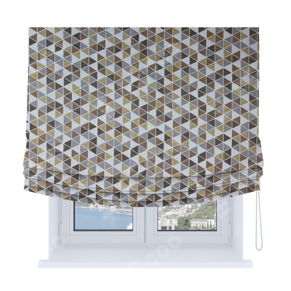 Римская штора Soft с мягкими складками, ткань димаут «Треугольники коричневые»
